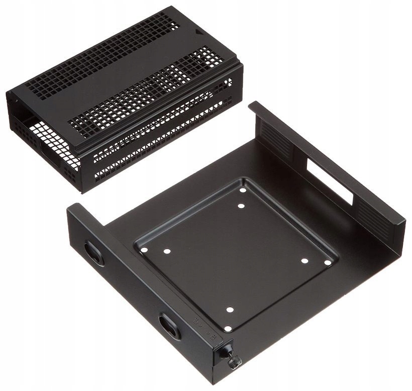 - Другие функции. Закрепите микро- или тонкий клиент между монитором и кронштейном с помощью двойного крепления VESA. Крепление также поставляется с корпусом для размещения адаптера питания. Обеспечивает максимальную гибкость настройки и удобство использования с сенсорным монитором в таких рабочих местах, как киоск или точка розничной торговли.