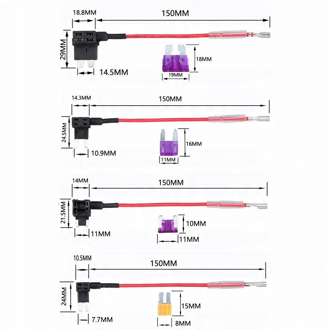 У нас также есть 4 типа предохранителей: предохранитель LP/Mini/ATO/Micro2, которые включают почти все типы предохранителей, которые могут использоваться всеми автомобильными брендами.