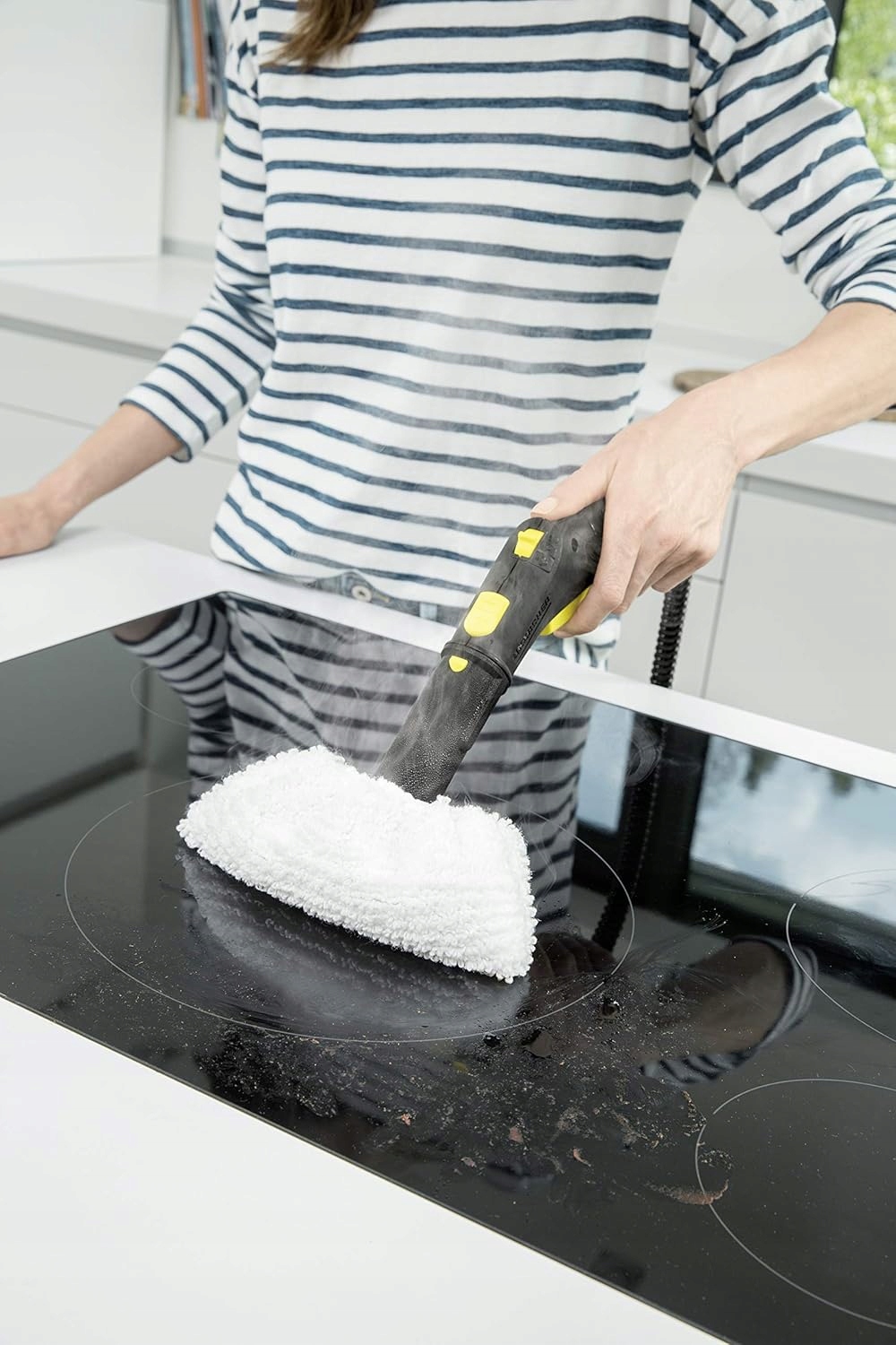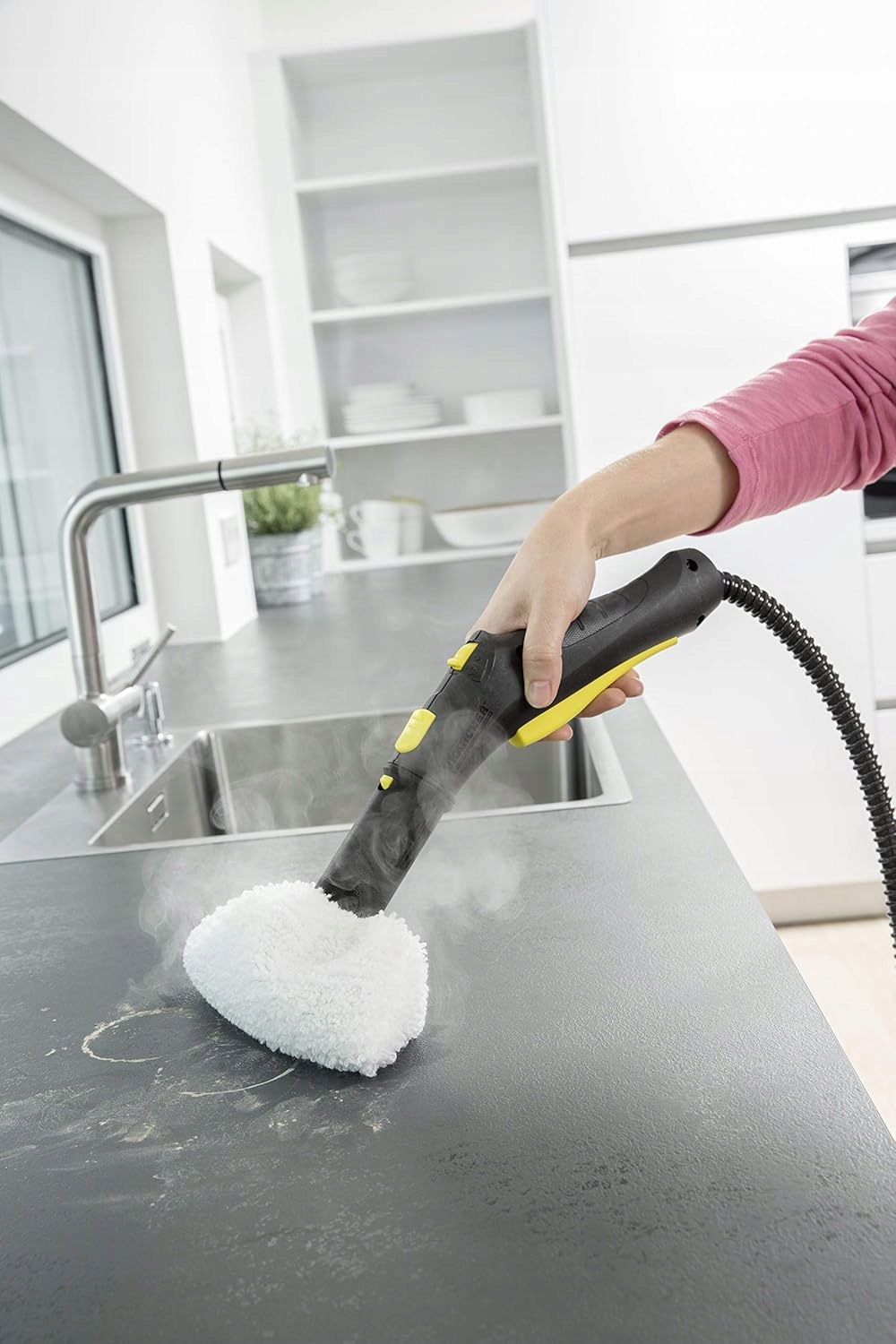 Диапазон доставки: 2 пола ткани (прикрепленная липучкой), 1 мягкая ручка для ручной форсунки для очистки сильно грязных поверхностей, 1 ткань для полировки гладких поверхностей, например, нержавеющая сталь.