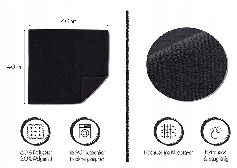 МІКРОФІБРА ЧОРНА ЩІЛЬНА 40х40 см 350 грам 941