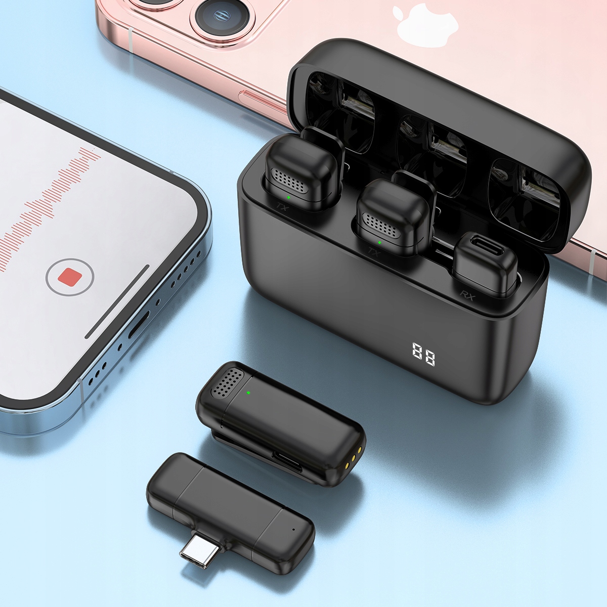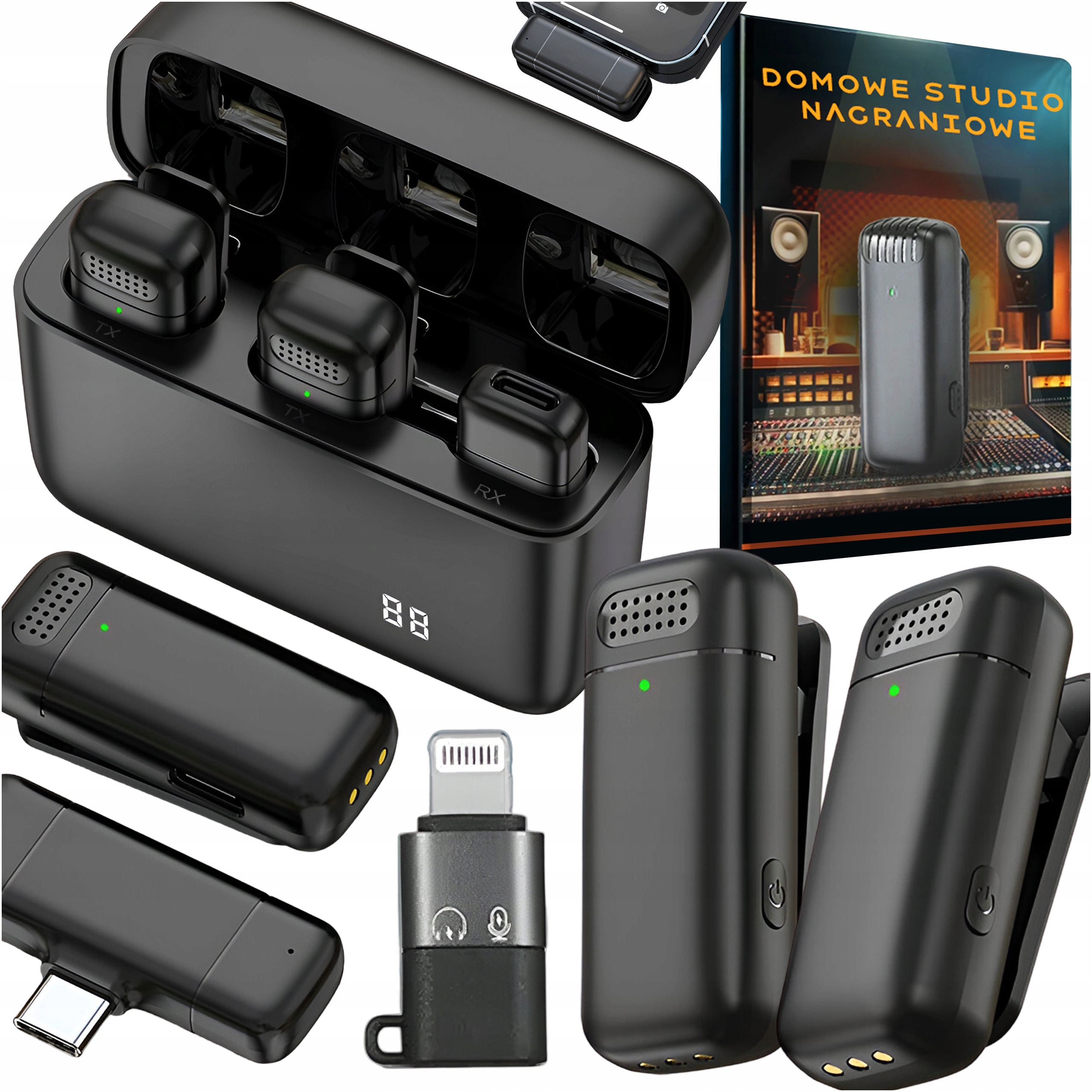 НАБОР БЕСПРОВОДНЫХ МИКРОФОНОВ ИЗ 2 МИКРОФОНОВ USB-C APPLE ANDROID POWERBANK