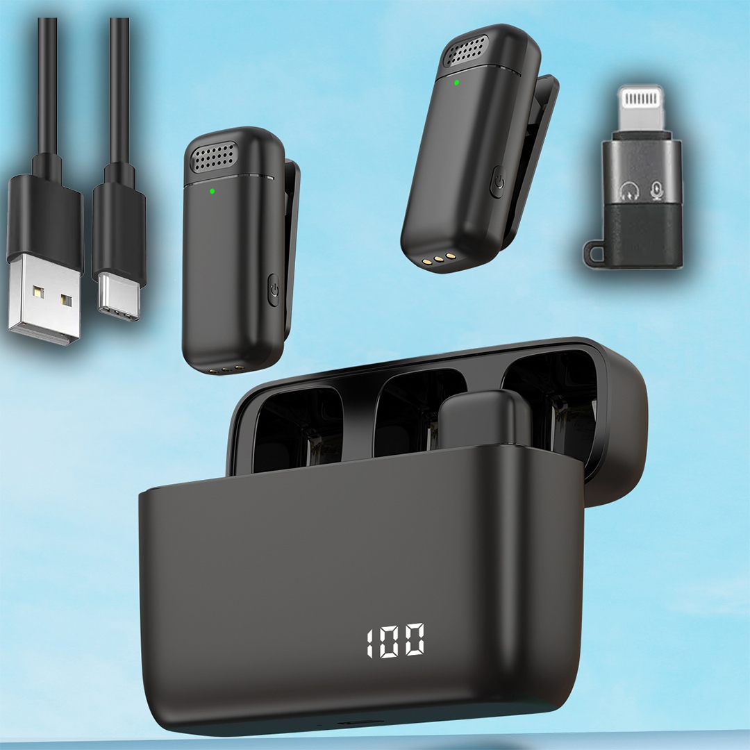 ✅ Уникальный комплект: Получите отличное качество звука с нашим набором из двух микрофонов b>,передатчик USB-C, адаптер Lightning и стильный чехол с функцией зарядки. Наши микрофоны совместимы с устройствами Android и iOS.