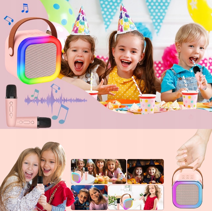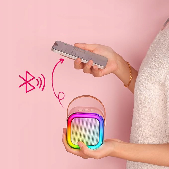 НАБОР МИКРОФОНА ДЛЯ КАРАОКЕ С BLUETOOTH С 2 БЕСПРОВОДНЫМИ МИКРОФОНАМИ, РОЗОВЫЙ