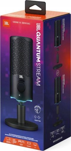 JBL Quantum Stream. Чувствительность микрофона: -37 дБ, Частота микрофона: 20–20000 Гц, Сопротивление микрофона: 16 Ом. Технология подключения: Проводной, Интерфейс устройства: USB. Цвет товара: черный. Источник питания: USB, Рабочее напряжение: 5 В, Потребляемая мощность: 500 мА. Вес микрофона: 248 г