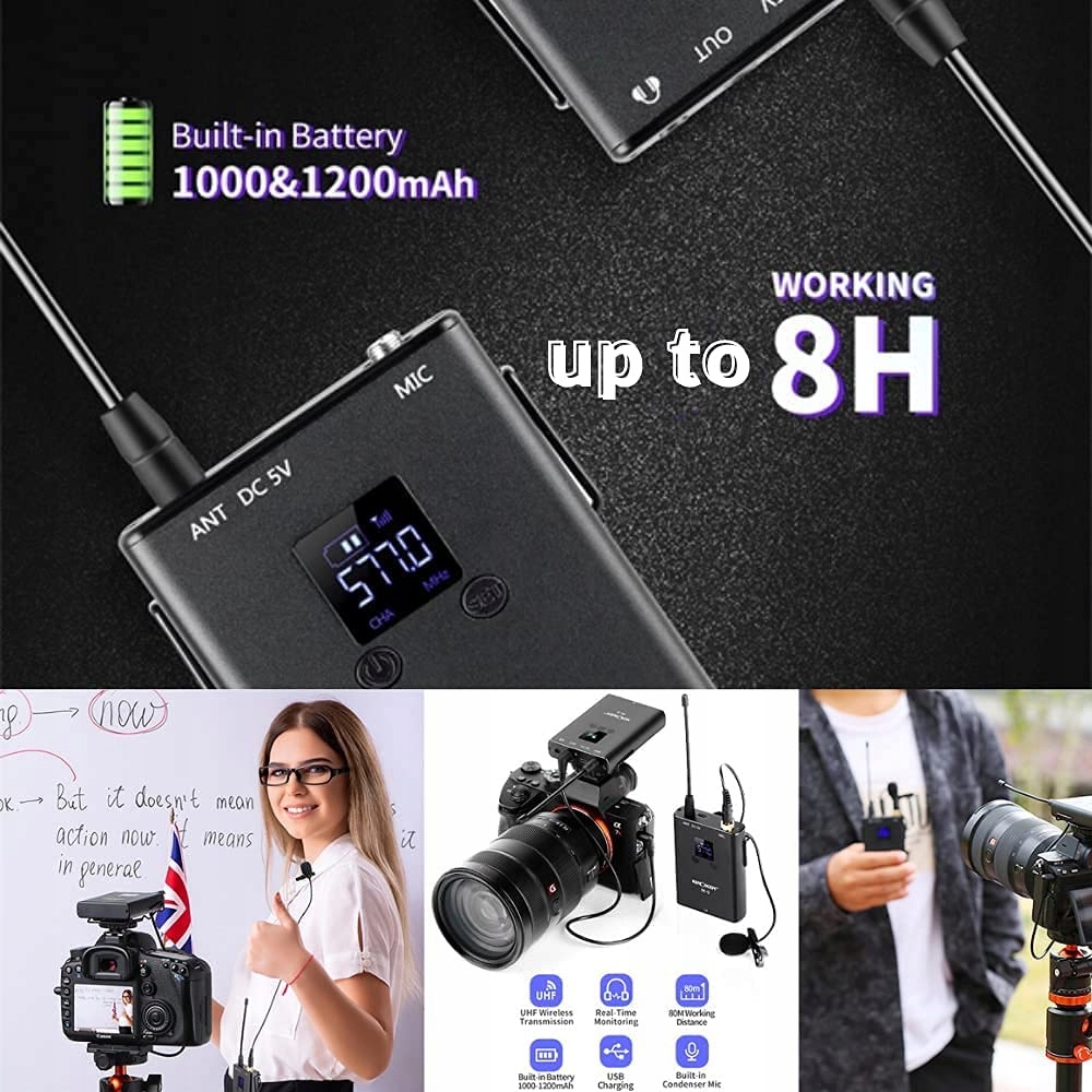 Мониторинг в реальном времени: Система беспроводного петличного микрофона имеет порт монитора для наушников на приемнике, поэтому его довольно легко слушать и устанавливать уровни перед записью, отслеживать состояние звука, чтобы завершить запись. один раз.