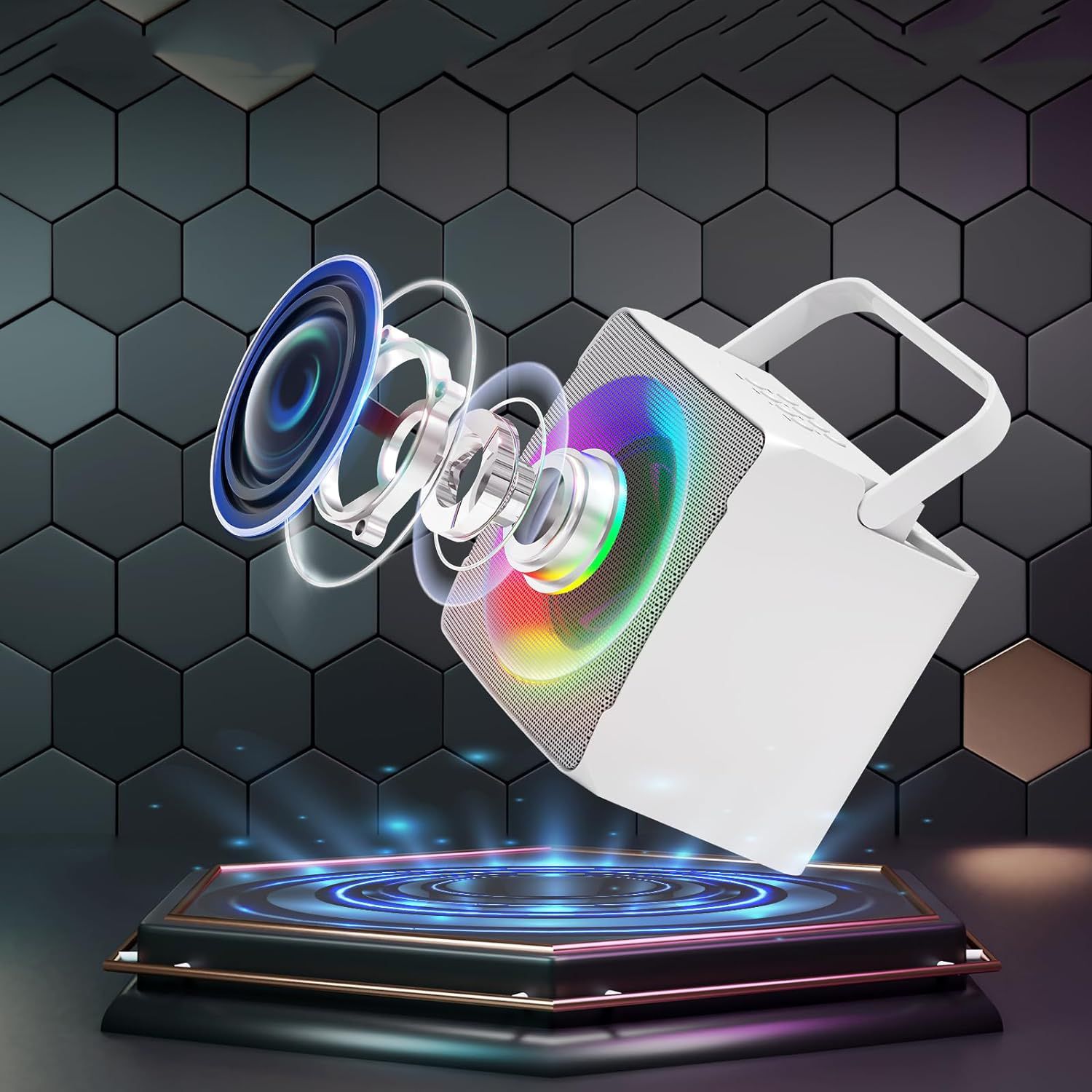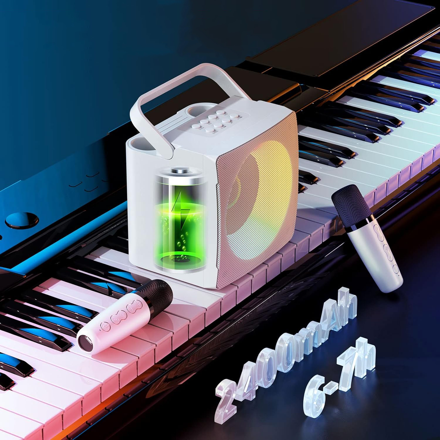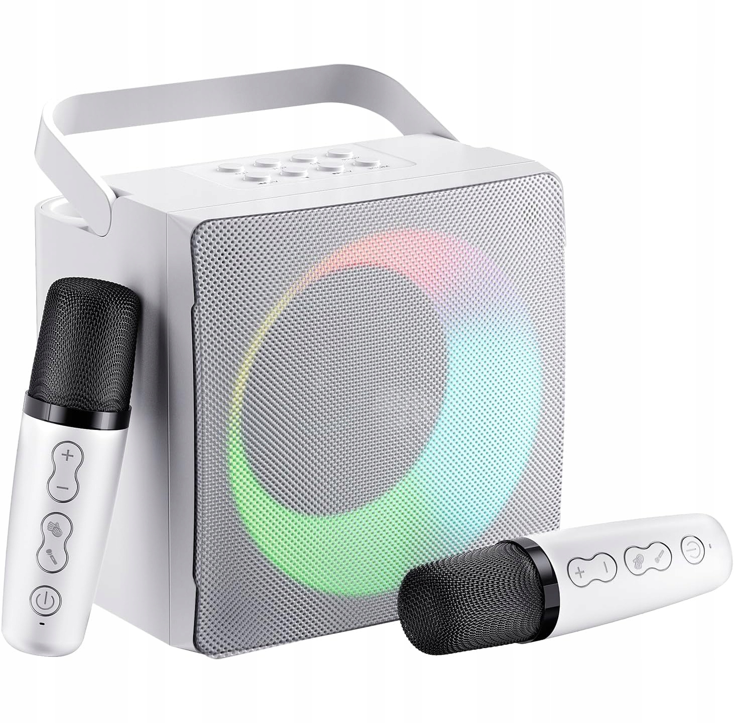 🎤🎤 【Разноцветные огни для вечеринок】 Поющий динамик отображает яркие и красочные светодиодные фонари. Эффект освещения можно переключать, чтобы создать атмосферу вечеринки. Длительное нажатие кнопки выключает свет. Идеальный подарок для семьи и друзей