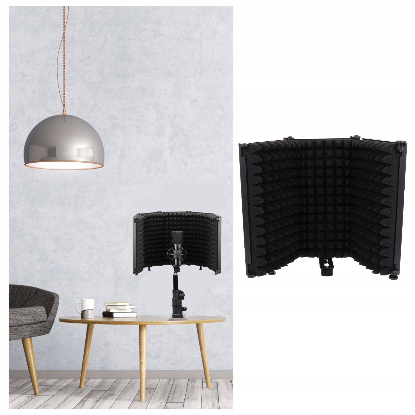 ✅Портативный складной ветрозащитный экран, легко решает проблему нестабильности /сухая передача звука, выбросы и разбросанные проблемы в процессе записи в различных случаях.