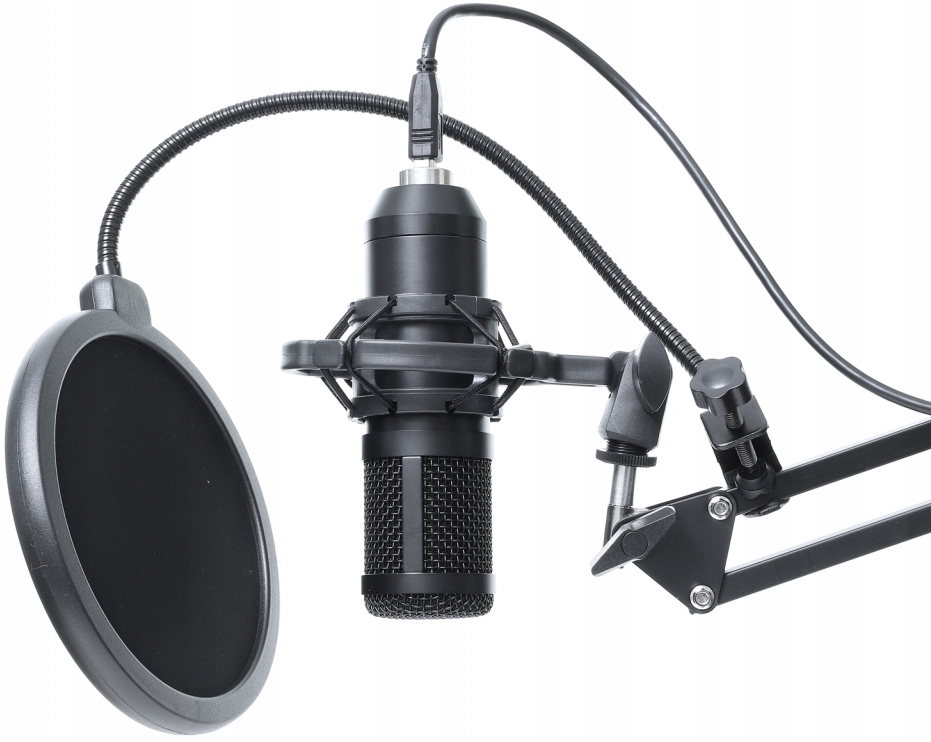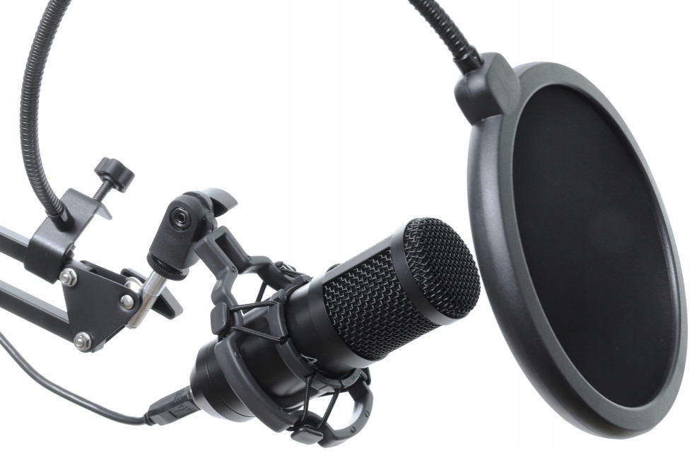 Mikrofon studyjny pojemnościowy USB na wysięgniku z membraną filtr POP