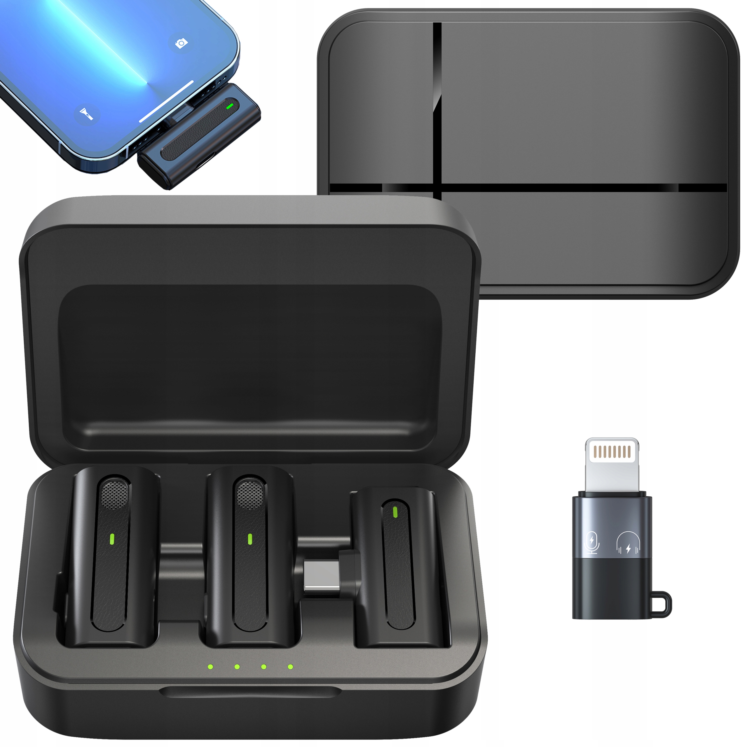 МІКРОФОН WIRELESS TIE МІКРОФОНИ 2x POWERBANK USB C ANDROID APPLE