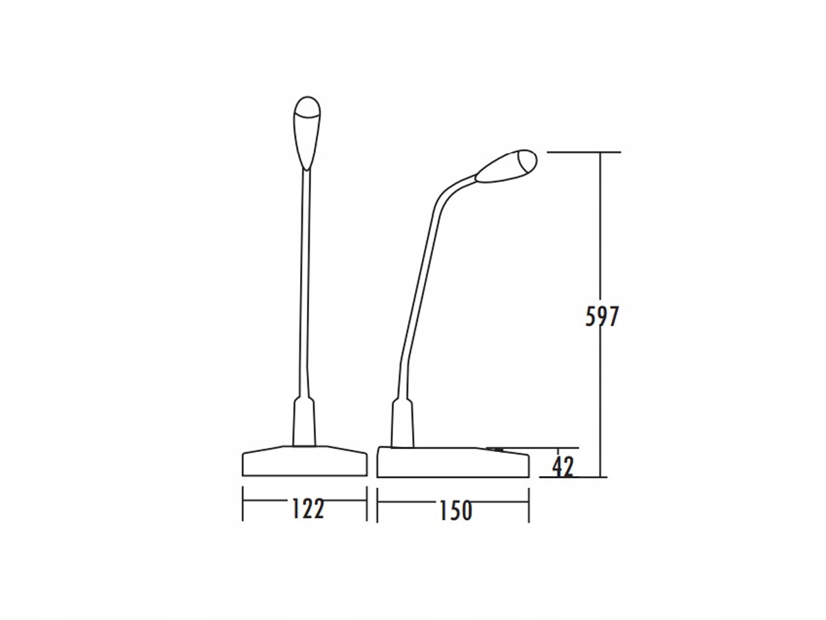 Крышка настольного компьютера изготовлена из высококачественной стали и покрыта порошковой краской черного цвета. Штанга микрофона подключается к стойке через разъем XLR. Индикатор трансляции в виде светового кольца расположен на вставке микрофона.