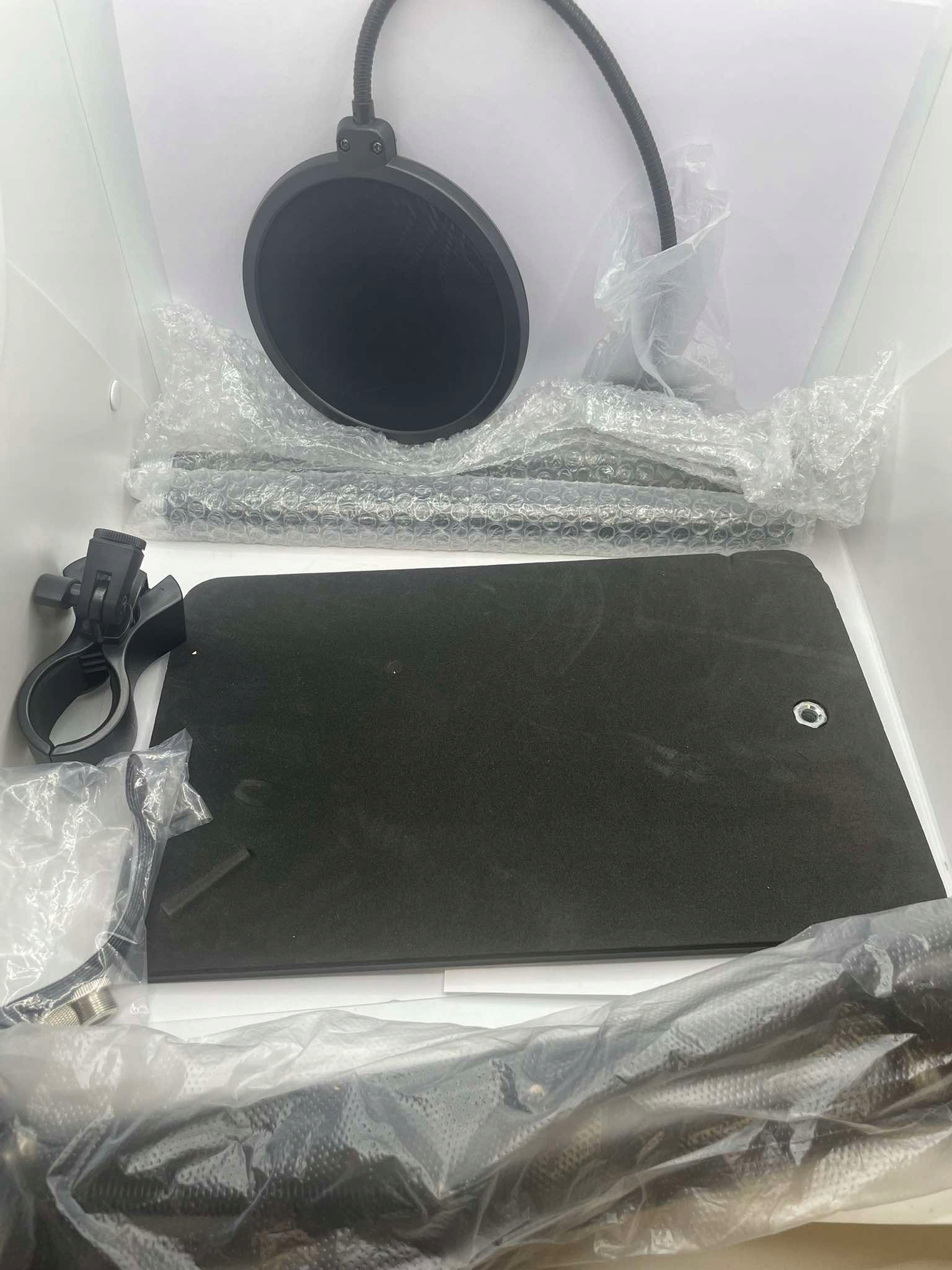 Полный набор подставок для микрофона. В комплект входит все необходимое для студийной записи или радиовещания: 1 металлическое основание, 3 опорные стойки, 1 складной кронштейн, 1 зажим для микрофона, 1 поп-фильтр, 2 металлических винта. (от 3/8 до 5/8 дюйма и от 3/8 до 1/4 дюйма), 5 кабельных стяжек и 1 руководство по эксплуатации. Кронштейн микрофона можно сложить для удобства переноски и хранения.