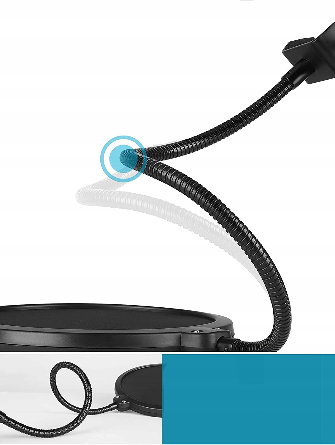 Регулируемая гусиная шея: металлическая ручка Гусиная шея полностью выдерживает вес фильтра и удерживает его на месте. Вы можете регулировать угол и расстояние между экраном и микрофоном.