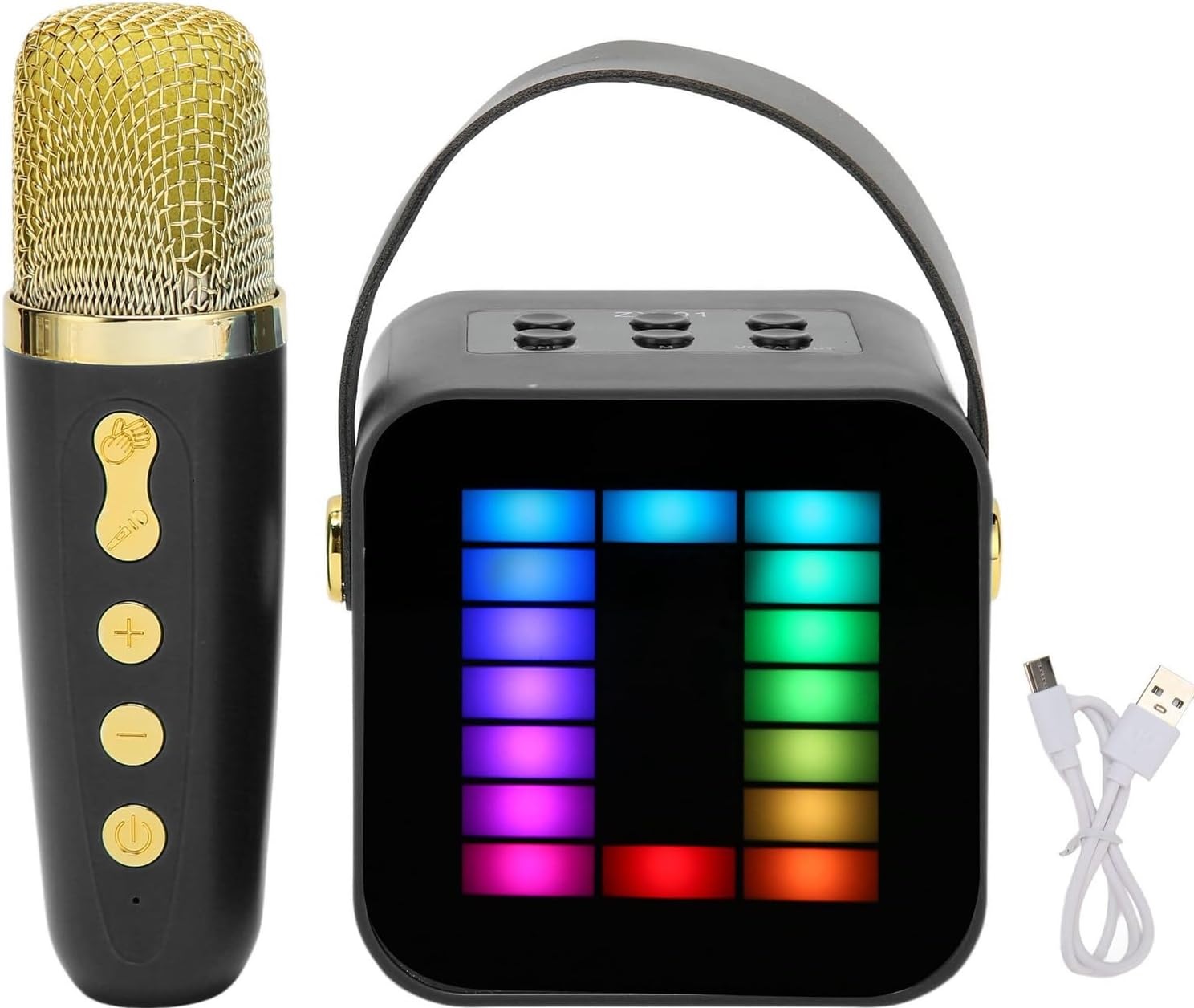 Караоке -динамик использует качество звука Hifi, глубокого баса и пространственного 3D -стерео, что может обеспечить текстуру музыки более реалистично, благодаря какой музыке течет лучше. Он оснащен микрофоном с высоким разрешением, который может работать настоящим голосом, сводя к минимуму шум окружающей среды, благодаря которому голос всегда правильный и чистый. "