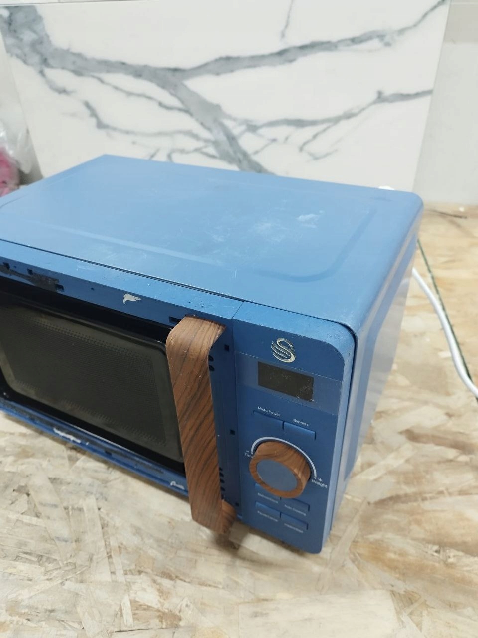 - емкость : 20 л. Swan Nordic 20 L Цифровая микроволновая печь, 6 уровней работы, Power 800 Вт, таймер 30, легкая очистка, режим размораживания, современный дизайн, ручка с эффектом древесины, матовый синий