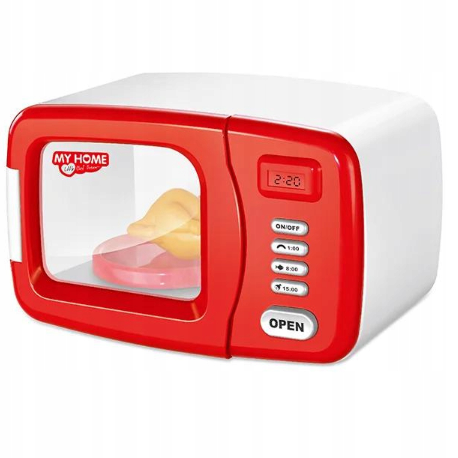 Игрушка представляет собой имитацию настоящая микроволновка. Дети могут открыть дверцу, положить туда еду и установить время на панели управления. Микроволновая печь имеет звуковые эффекты, такие как время работы микроволновой печи, сигнал «готовность» и звуки приготовления, что делает игру более реалистичной.