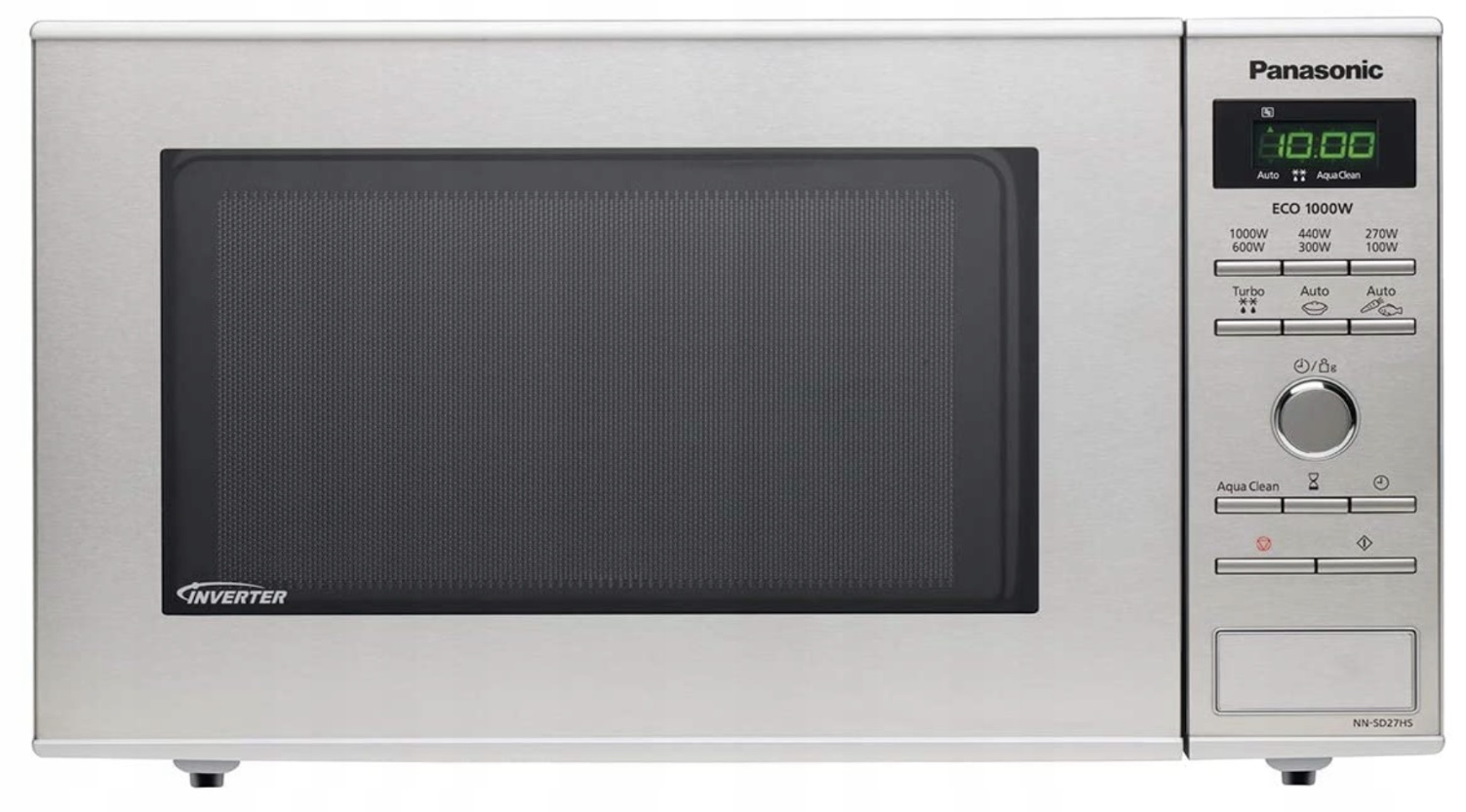 - Инверторная микроволновая печь Panasonic NN-SD27HSBPQ предназначена для идеального приготовления и разогрева пищи. Он имеет емкость для приготовления 23 л, инверторную мощность 1000 Вт, отделку из нержавеющей стали, 10 программ приготовления «One Touch» и многое другое.