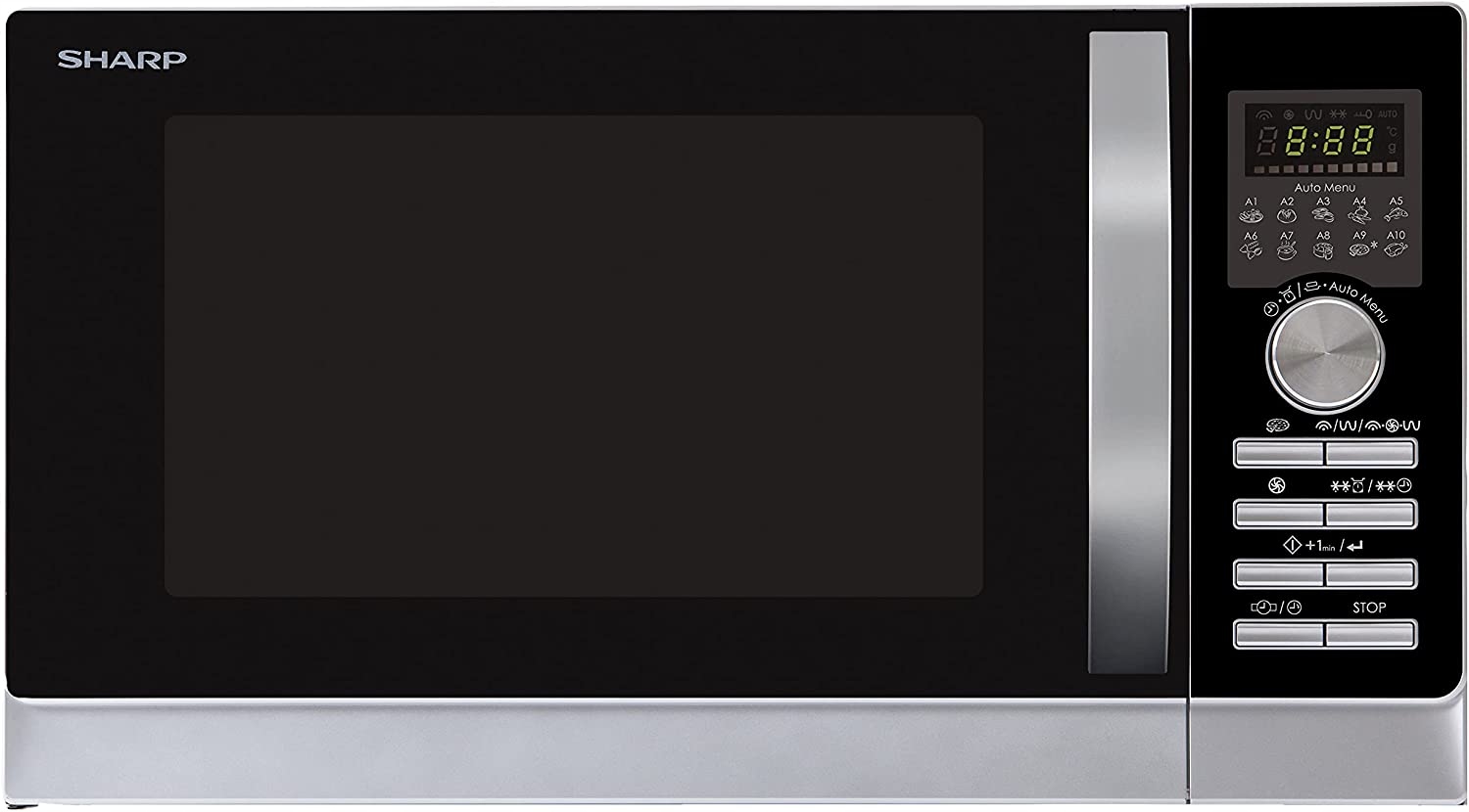 СВЧ-печь Sharp R843INW 3-в-1 с горячим обдувом, грилем и конвекцией / 25 л / 800 Вт / гриль 1000 Вт / 2500 конвекция / 10 автоматических программ / программа для пиццы / металлический поворотный стол (30 см) / серебристый h2>Готовьте в микроволновой печи