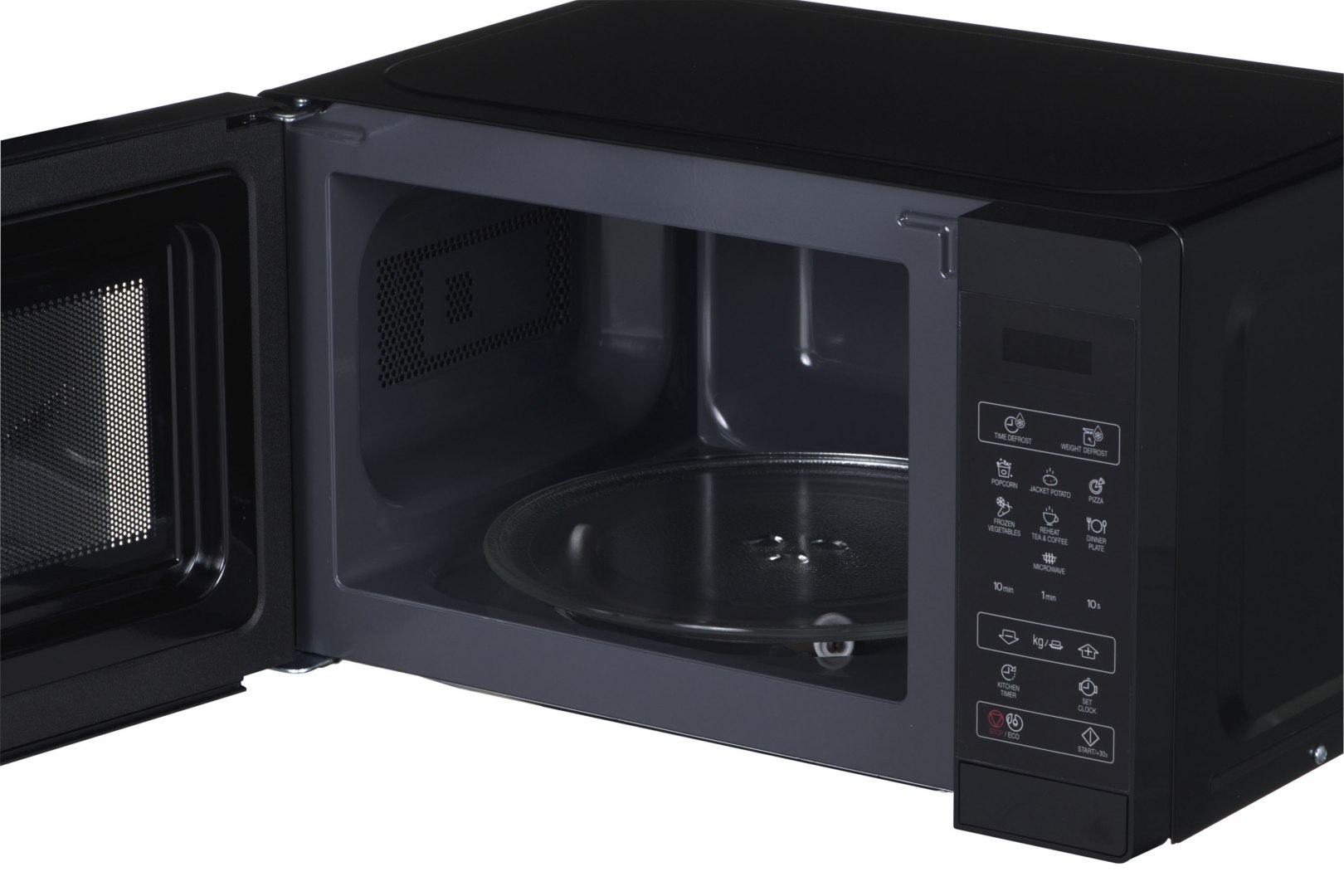 Простая и интуитивно понятная панель управления позволяет легко управлять, а функция разморозки обеспечивает удобное и быстрое приготовление замороженных продуктов. Элегантный дизайн и компактные размеры позволяют микроволновой печи идеально вписаться в современную кухню, а черный цвет придает ей уникальный характер.