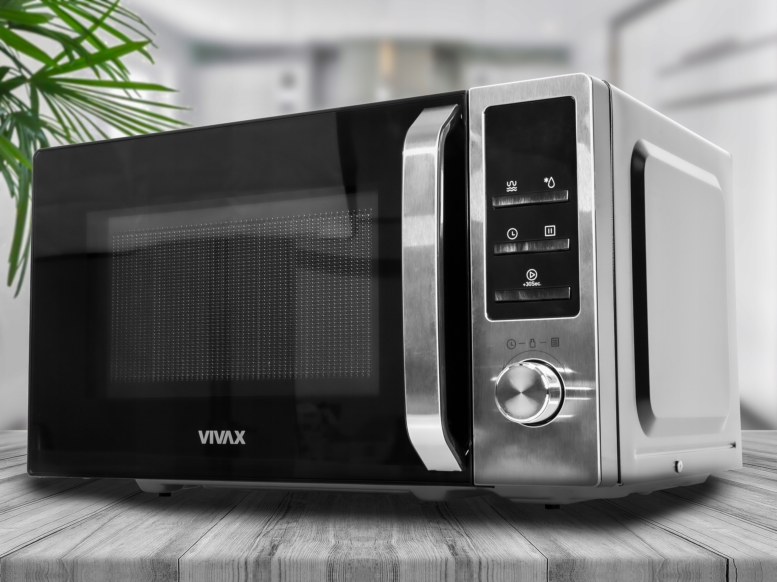 Превосходная конструкция и качество изготовления подтверждаются панелью управления нержавеющей стали и стеклянной дверью с ручкой из нержавеющей стали, которая делает микроволновую печь Vivax, является незаменимой детализацией на каждой кухне.