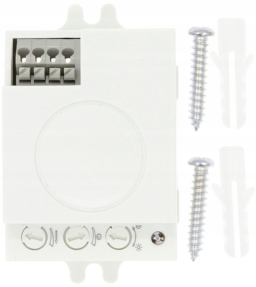 Светодиод датчика движения Dusk Mikrot -Wire Волны, которые после подпрыгивания от подвижного препятствия возвращаются в датчик, активируют его работу. Интегрированная система обеспечивает энергоэффективность, практичность, автоматизм, надежность, широкую функциональность и безопасность. Датчик оснащен сумеречной функцией. Устройство контролируется с помощью 3 потенциометров, позволяющих регулировать режим работы: диапазон обнаружения, время переключения реле, чувствительность датчика света.