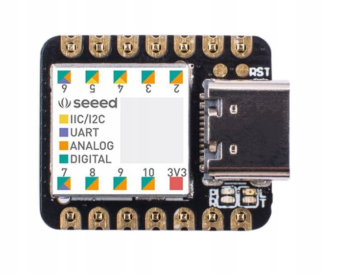 Миниатюрная доска размерами 22x18 [мм]. Ее параметры значительно превосходят семейство плат, совместимых с Arduino UNO. Как и у большинства современных плат, рабочее напряжение составляет 3,3В. В набор входят четыре миниатюрные наклейки. Для подключения платы к компьютеру используйте кабель с разъемом USB-C. Плату можно программировать в среде Arduino IDE.