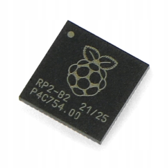 RP2040 — дебютный микроконтроллер Raspberry Pi Foundation. Впервые он был использован в модуле Raspberry Pi Pico и в модулях других производителей, включая Arduino. Это очень эффективная двухъядерная система на базе ARM Cortex M0+ с тактовой частотой 133 МГц. Он имеет большой объем встроенной памяти SRAM, программируемый ввод-вывод (PIO) и другие популярные интерфейсы связи. Микроконтроллер был заключен в корпус QFN-56.