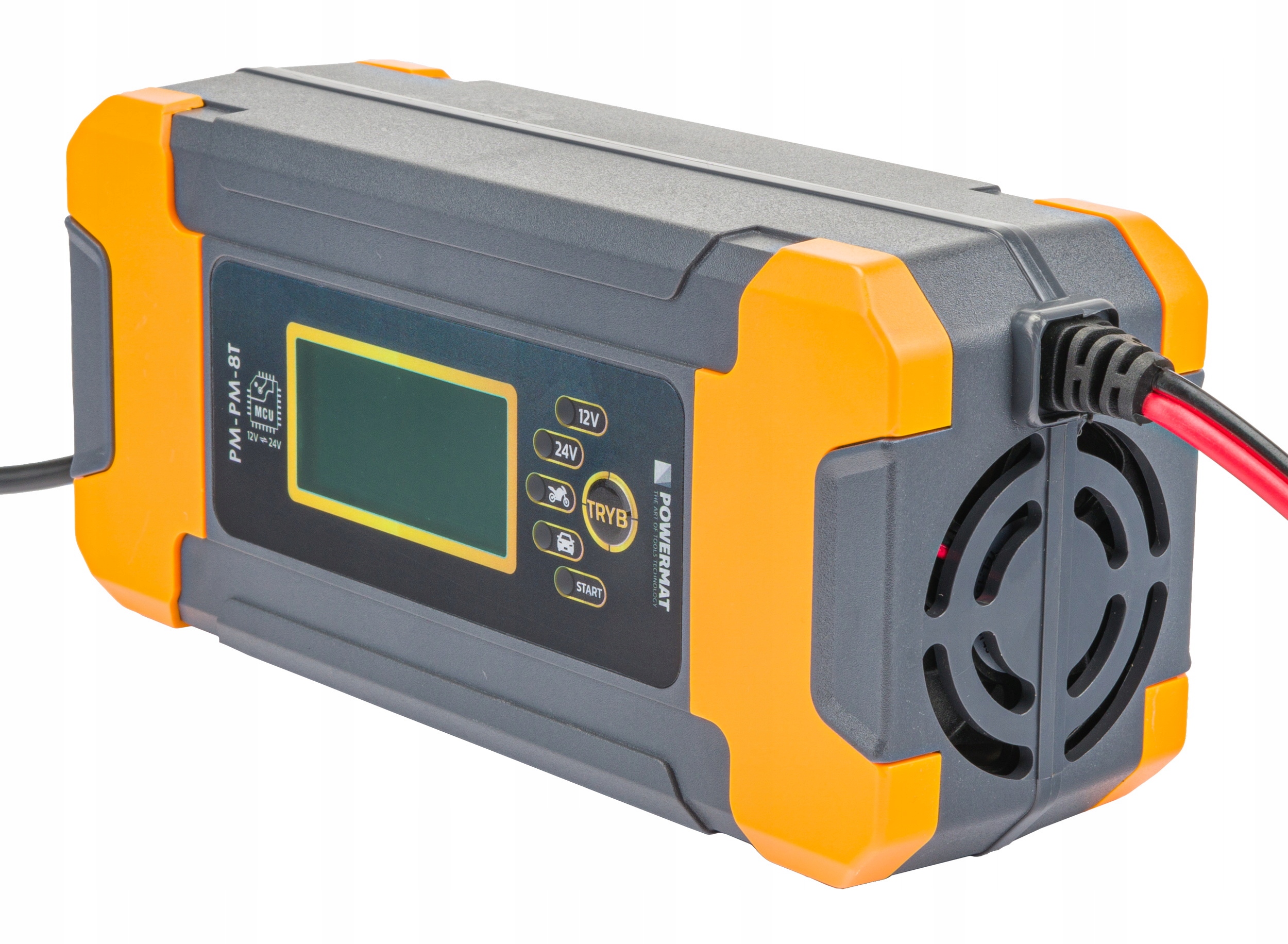 Высококачественный автоматический и точный микропроцессорный аккумуляторный выпрямитель POWERMAT PM- ПМ-8Т прекрасно работает в профессиональных автосервисах и мастерских, а также в домашних гаражах. Устройство может заряжаться током 12 В и 24 В.