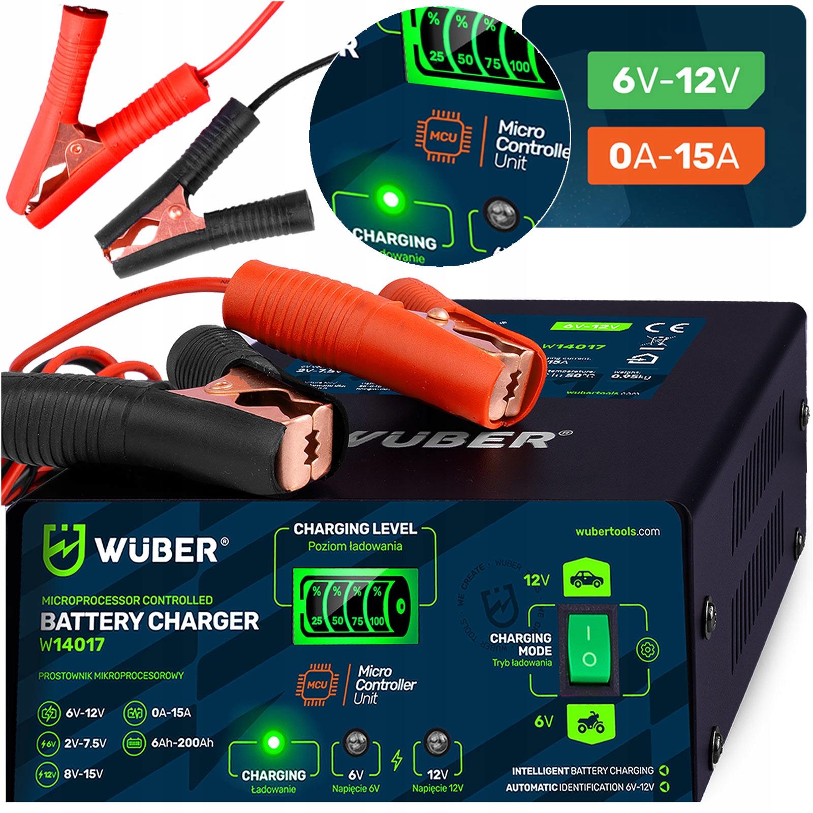 МІКРОПРОЦЕСОРНИЙ ЗАРЯДНИЙ ПРИСТРІЙ 6-12 В 15 A ДЛЯ АКУМУЛЯТОРА WUBER