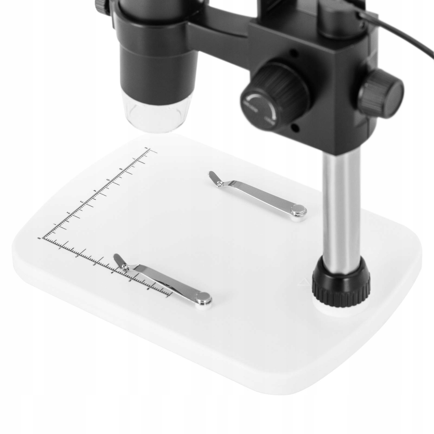 - Четкость – с помощью кнопки на стойке компьютерного микроскопа, можно легко определить резкость поля зрения в зависимости от высоты.
