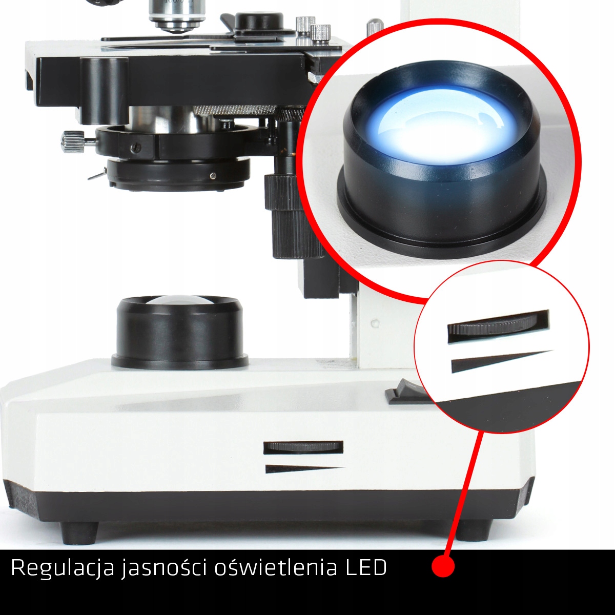 Микроскоп оснащен четырьмя ахроматическими линзами: 4x, 10x, 40x и линзой Иммерсионный объектив со 100-кратным увеличением. Увеличение от 40x до 1000x позволяет рассматривать широкий спектр живых микроорганизмов, а также свежие или постоянные препараты из тканей растений или животных.