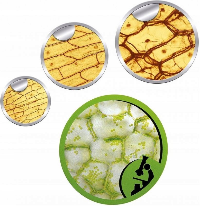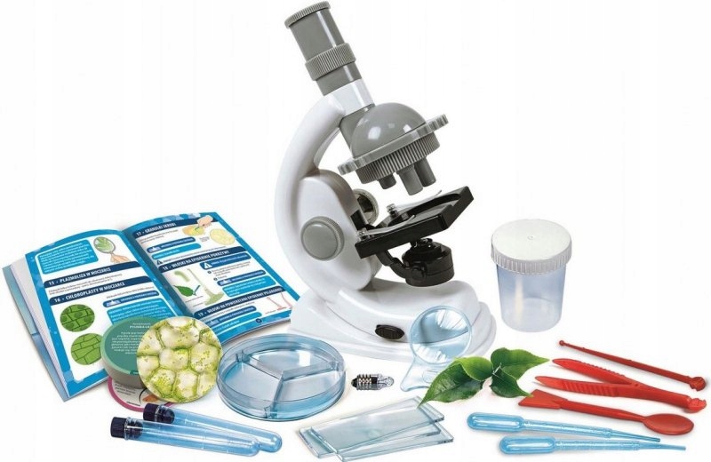 богато оборудован инструментами, которые помогут наблюдать за окружающим нас миром: пластиковые слайды, стакан, пипетки и расширение стекла.