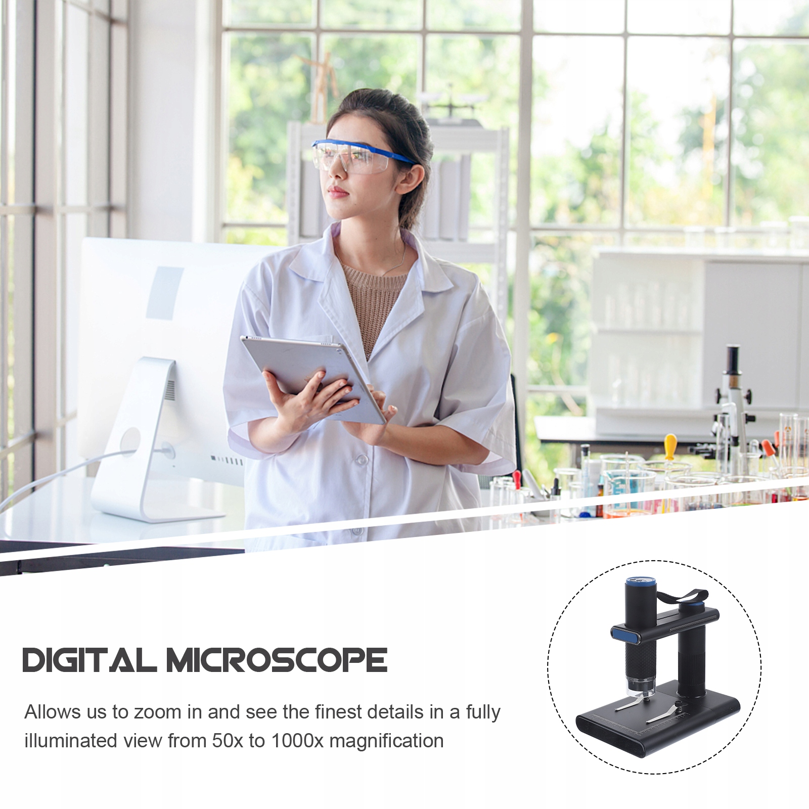 ✅ Обложка цифровой/ микробиологической линзы: он позволяет нам увеличивать и видеть наименьшие детали в полностью освещенном представлении от увеличения 50x до 1000x. Прозрачность.