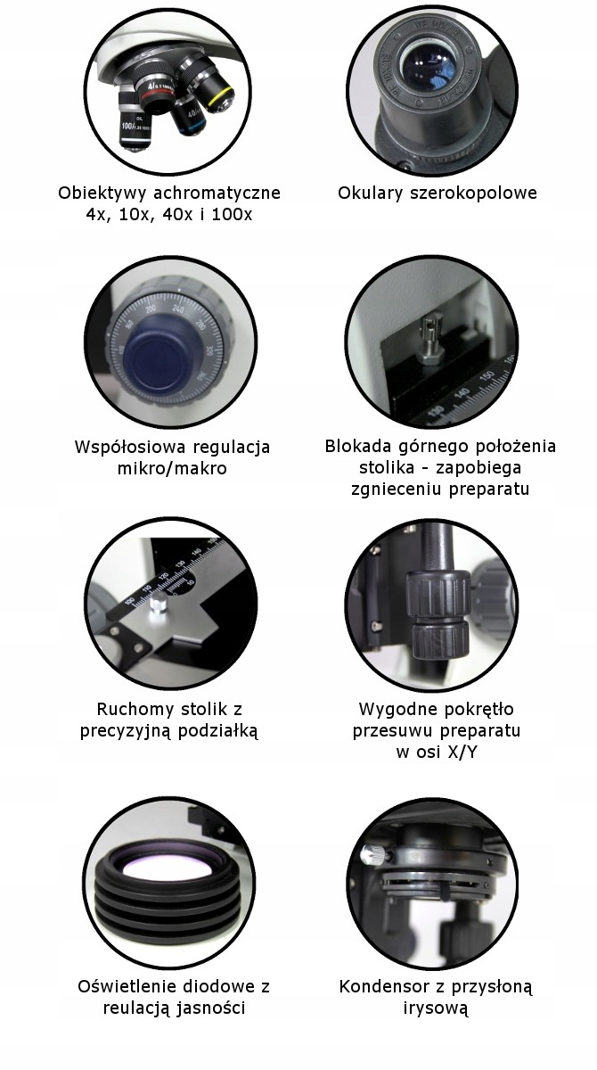 Почему стоит выбрать именно эта модель? Большим преимуществом микроскопа является его соотношение цены и качества. Прочная, устойчивая и эргономичная конструкция штатива гарантирует его длительное использование. Отличные ахроматические линзы позволяют получать резкие изображения и увеличения в диапазоне 40–1000x. Широкоугольные очки и яркое светодиодное освещение позволяют рассмотреть даже очень мелкие предметы. Механический стол и точно регулируемые винты для микро- и макроперемещений обеспечивают необходимую точность работы. Благодаря широкому выбору аксессуаров серия Genetic Pro может быть расширена за счет включения других методов микроскопического наблюдения. Поляризация, темное поле, фазовый контраст значительно расширят возможности этого устройства. Широкий набор камер микроскопа и фотоадаптеров позволит документировать изображение в виде фотографий и видео, а многофункциональное программное обеспечение позволит в дальнейшем анализировать и обрабатывать полученный таким образом материал.