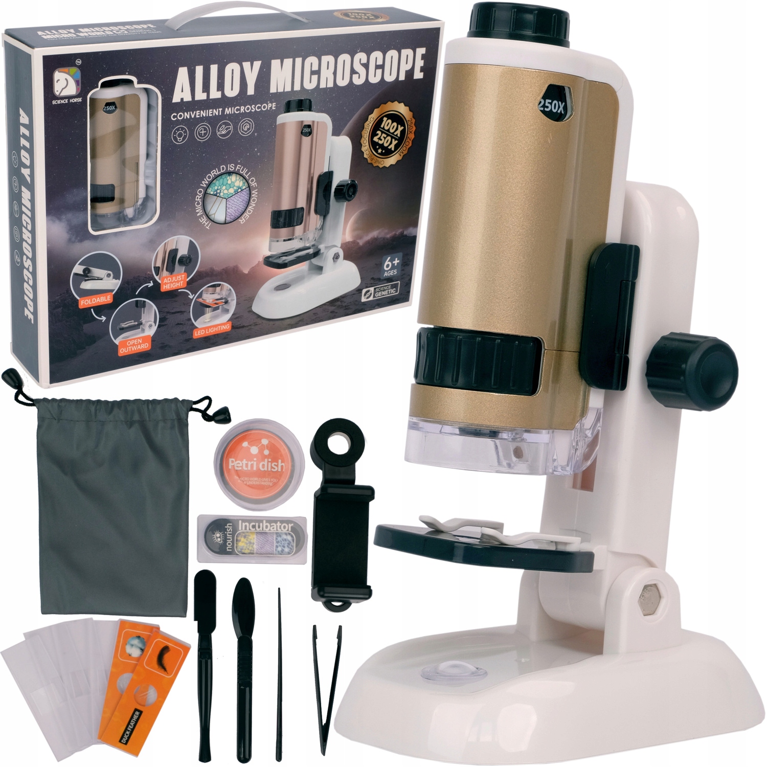 Представляем Вам портативный микроскоп с 2-х градусным увеличением вместе с набором необходимых аксессуаров, которые позволят познакомит молодого ученого с миром микробиологии и позволит наблюдать за мелкими объектами. Домашняя лаборатория позволит вашему ребенку открыть для себя, насколько увлекательным может быть мир науки.