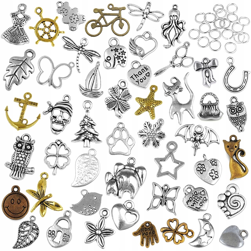 MIX ПОДВЕСКИ ПОДВЕСКИ МЕТАЛЛ + ЗВЕНЬЯ НАБОР ИЗ 50 ЭЛЕМЕНТОВ