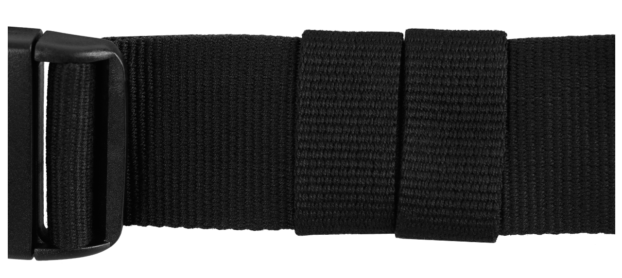 Быстрая регулировка обхвата. Конец ремня имеет обрезанную форму, благодаря которой его легче продеть через пряжку. Четыре подвижных шлевки фиксируют свободный конец ремня.