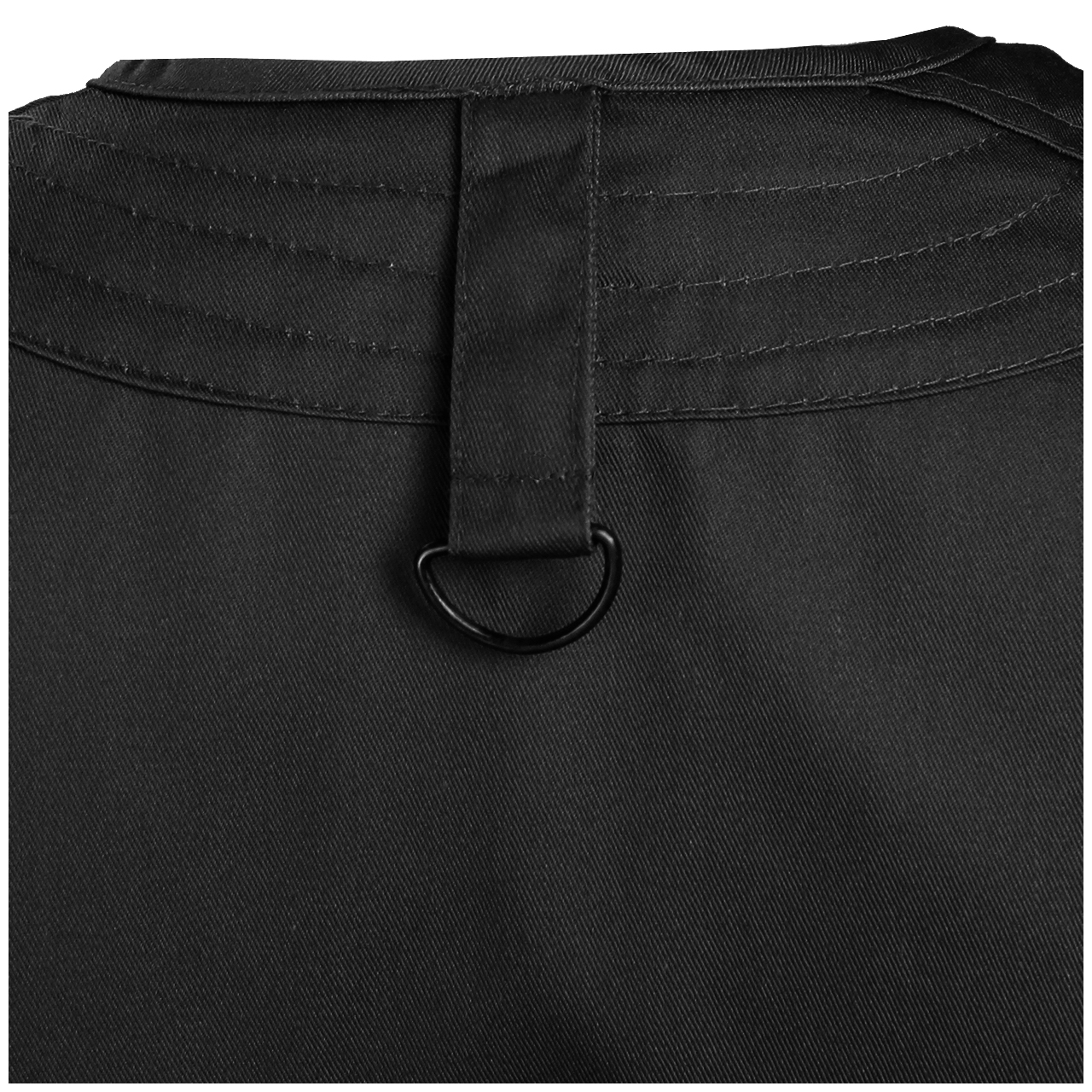 На одном плече вшит погон, позволяющий прикрепить, например, ремень сумки или оружейный ремень. Кокетка дополнительно усилена и оснащена D-образным крючком.