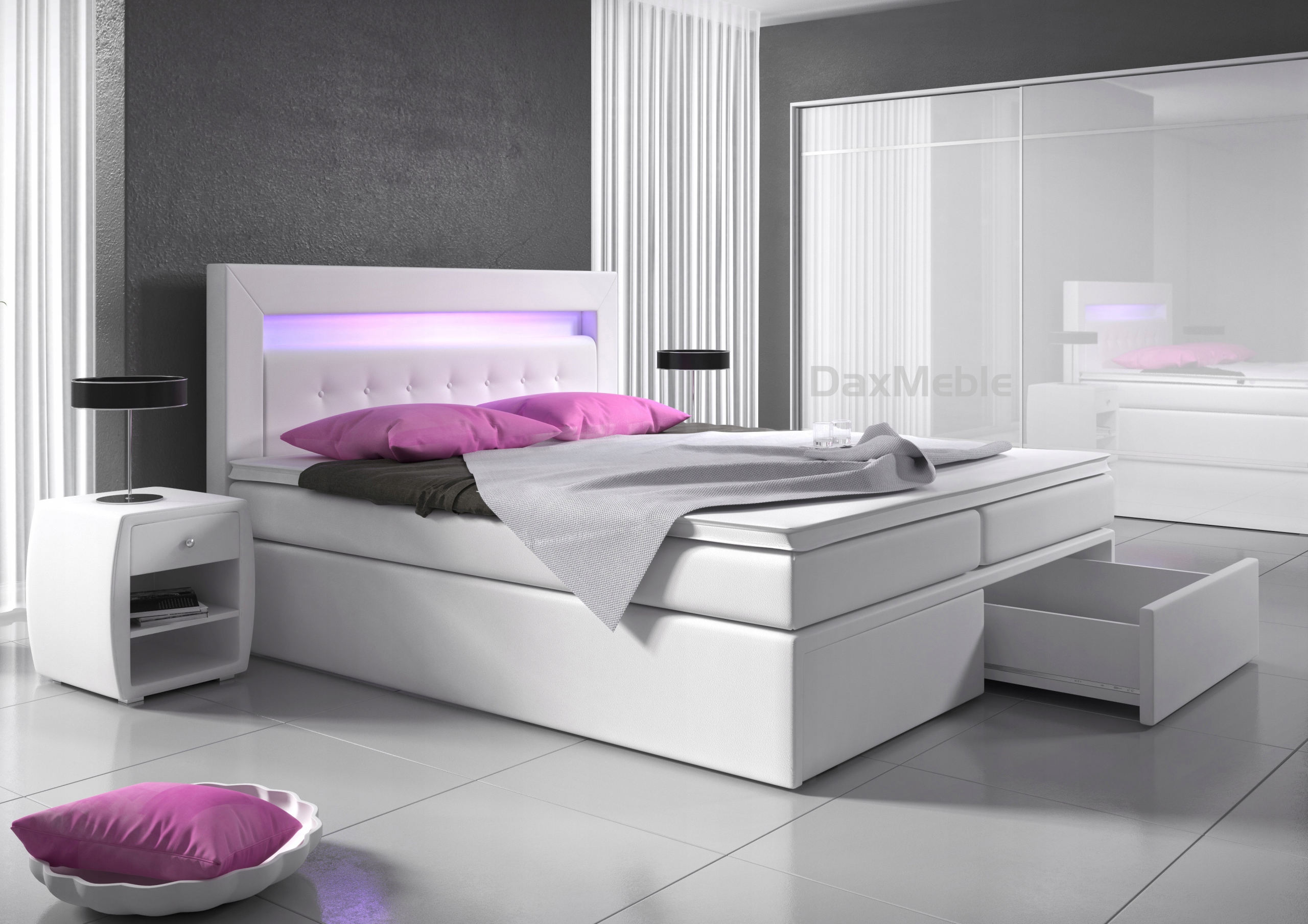 Удобная мягкая кровать MILANO 1 с тремя матрасами, контейнерами для постельного белья и светодиодной подсветкой станет прекрасным дополнением любой спальни. Эксклюзивный дизайн и внимание к каждой детали – идеальное сочетание роскоши и практичности.