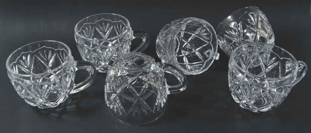 МИЛЫЕ, СТАРЫЕ ХРУСТАЛЬНЫЕ ОЧКИ - 6 шт. - тяжелый, массивный набор