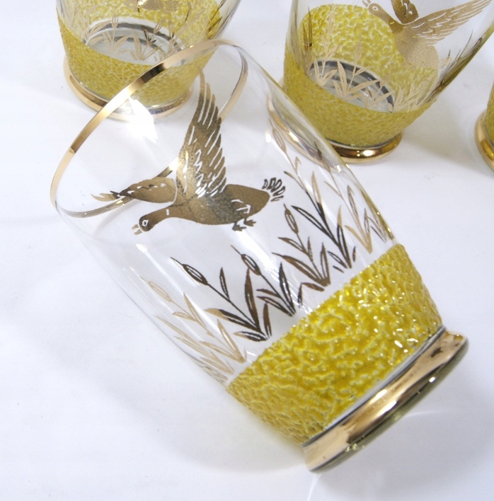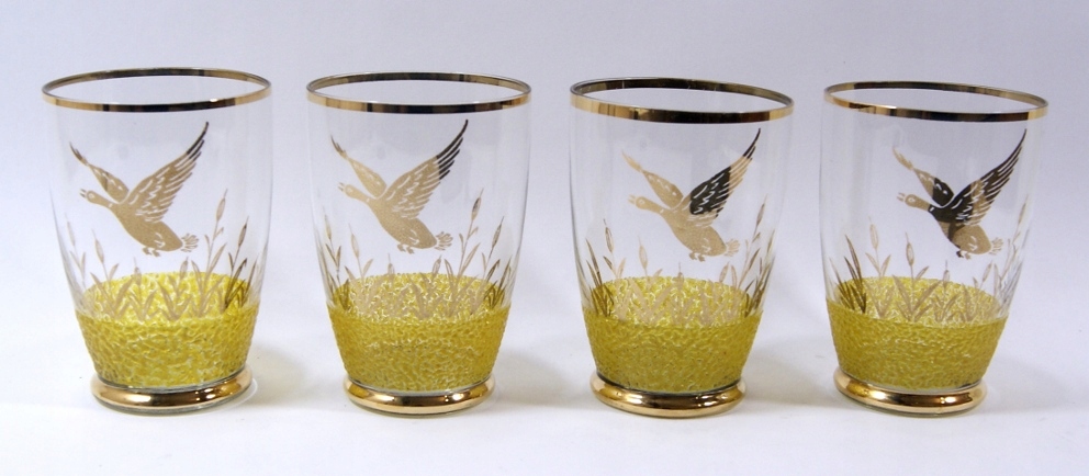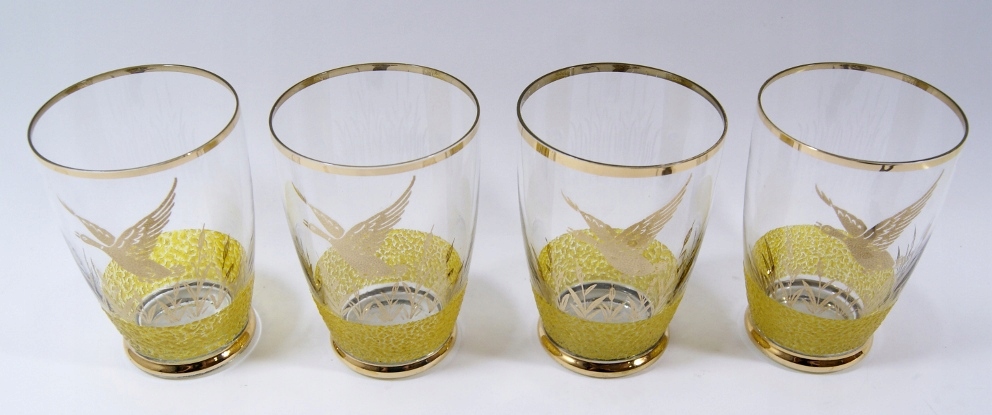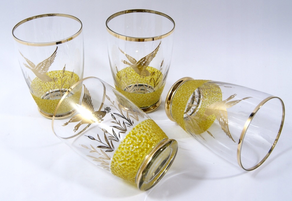 МИЛЫЕ, СТАРЫЕ ХРУСТАЛЬНЫЕ ОЧКИ - золотые птицы - комплект. 4 шт,