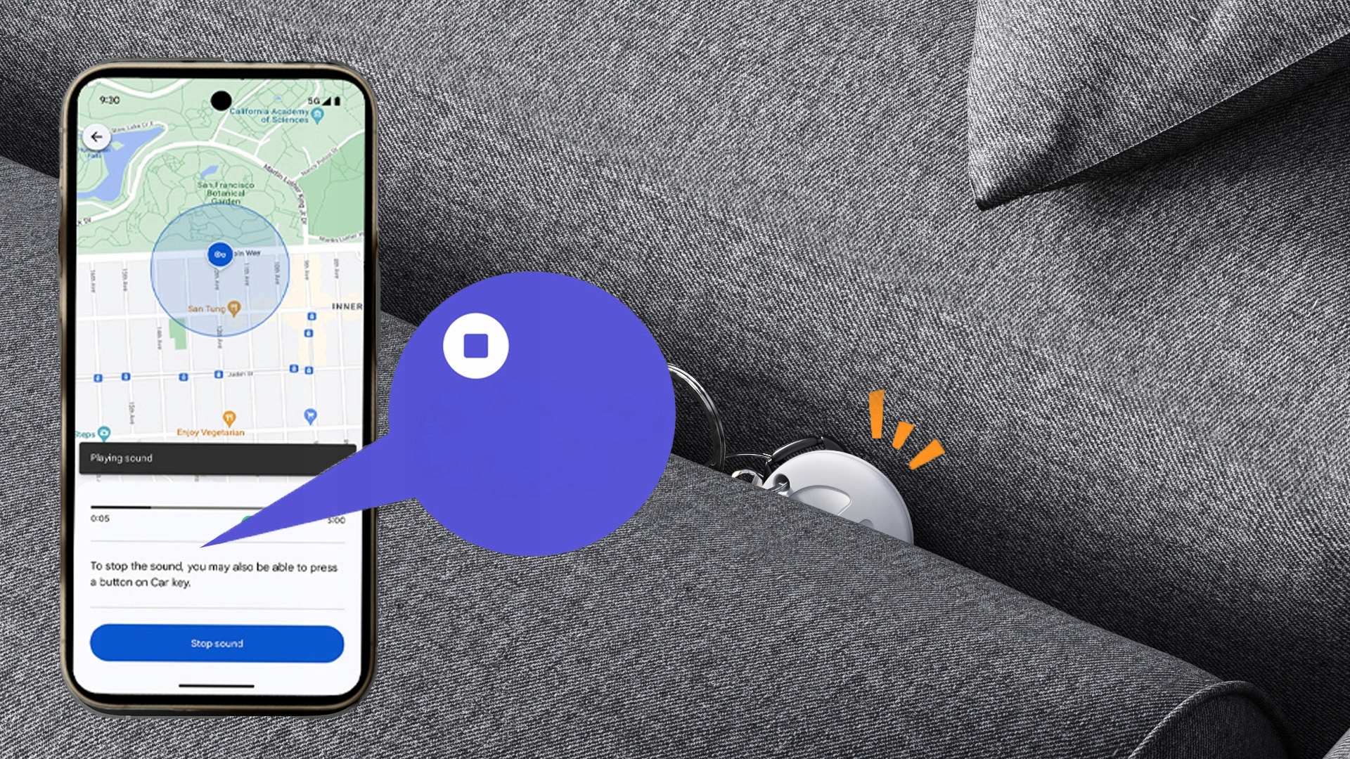 ✔ Когда предмет находится вне досягаемости своего владельца в течение определенного периода времени, его могут обнаружить другие устройства Android, предоставляя владельцу информацию о местонахождении предмета.