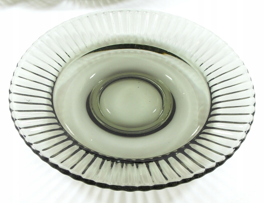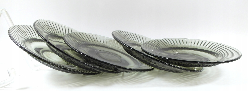 Предмет аукциона — красивый старинный набор из 5 десертных тарелок, выполненных из толстого разноцветного хрустального стекла.