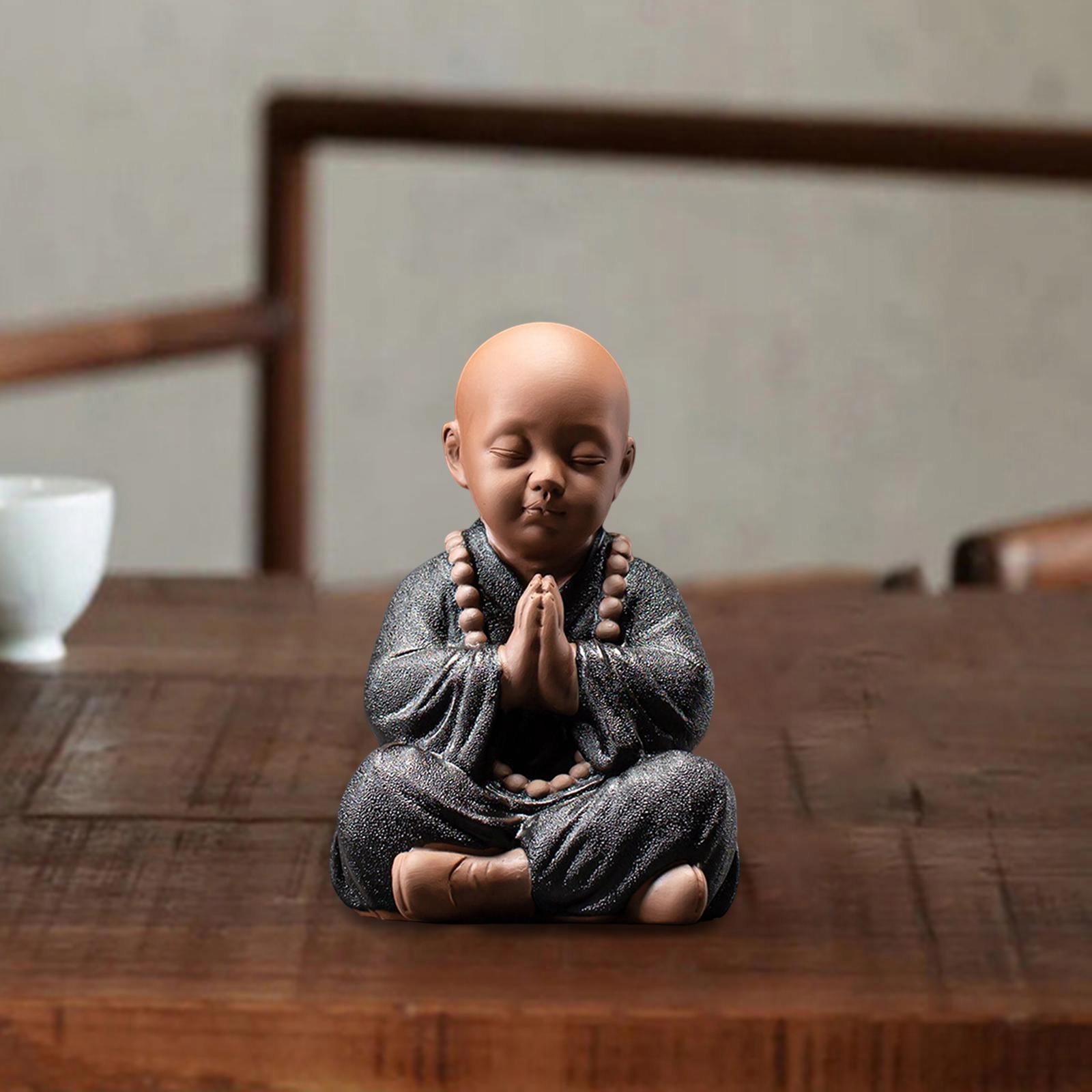 Эта статуя представляет собой маленького монаха с яркими деталями и резными фигурками, идеально подходящим для украшения вашего дома.