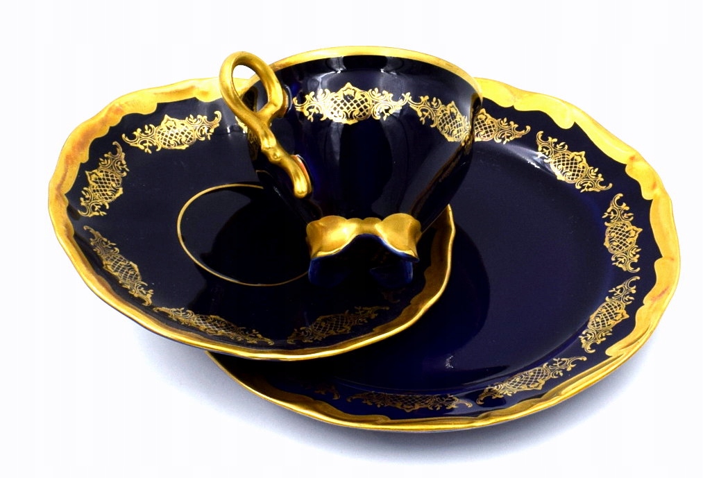 Красивый, старинный набор для завтрака в коллекцию, выполненный из белого фарфора, украшенный кобальтом и золотом.