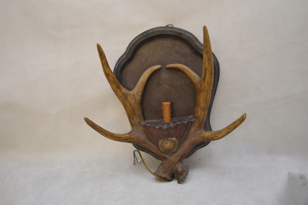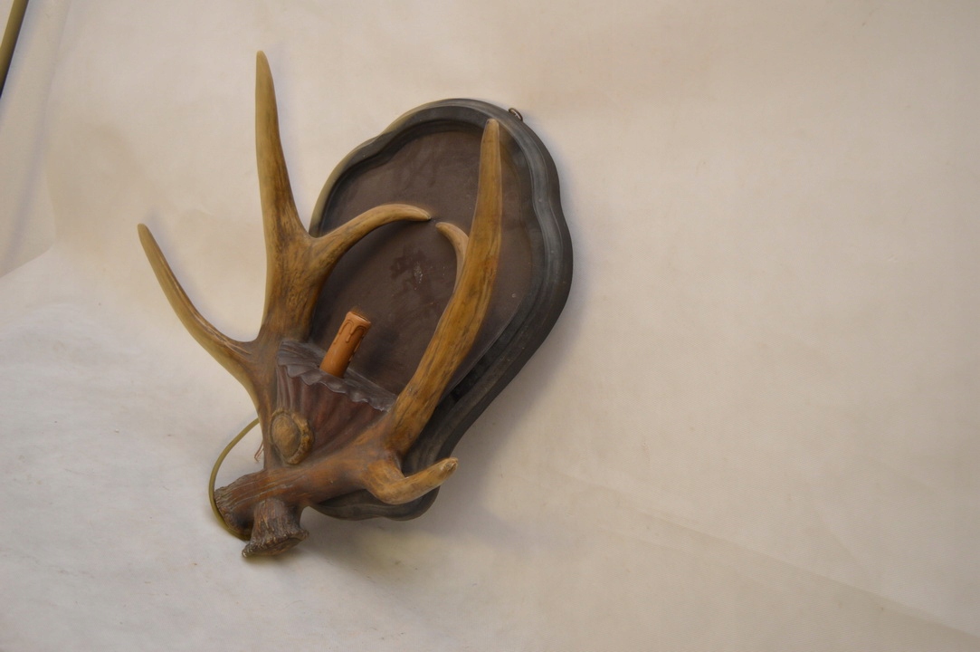 Здравствуйте, сегодня я хотел бы предложить вам охотничий настенный светильник с оленьими рогами.