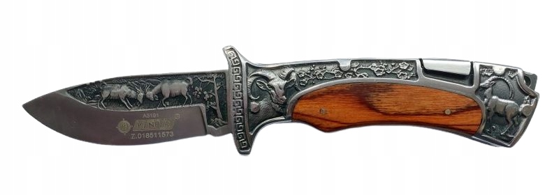 Общая длина: 22 см. Длина клинка: 9,5 см. Ширина клинка: 3 см. Вес: 320 г. Толщина клинка 3 мм. Украшен охотничьим мотивом. Идеально подходит для подарка. Это выглядит специфично и благородно одновременно.