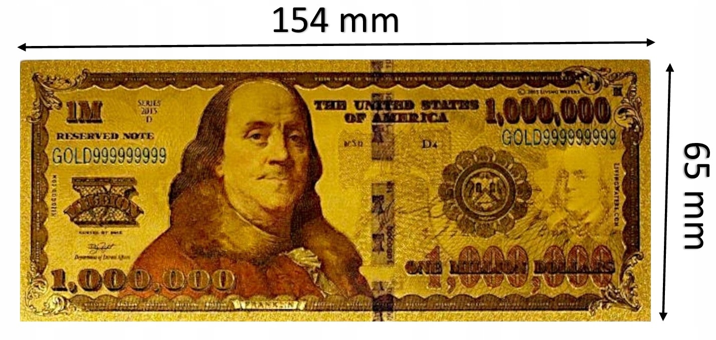 КОЛЛЕКЦИОННАЯ ПОЗОЛОЧЕННАЯ БАНКНОТА ИЗ ПВХ НА МИЛЛИОН ДОЛЛАРОВ