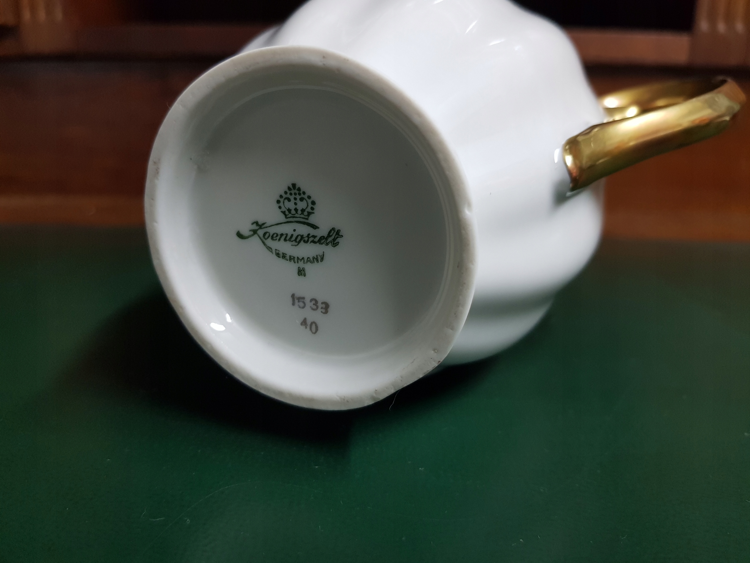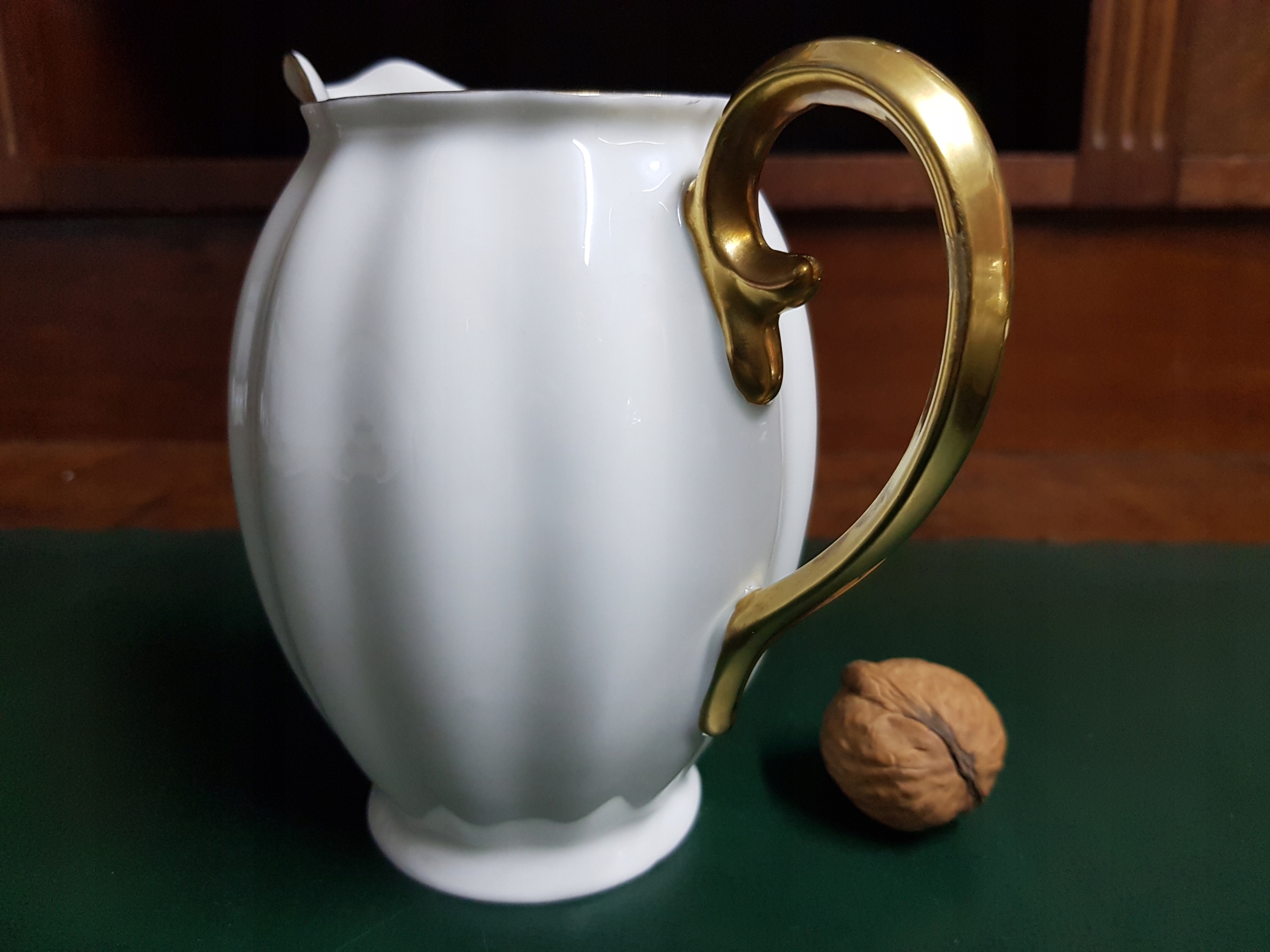 Предмет аукциона – молочник работы Кёнигзельт-Явожины Сленской, модель Розелла. Фарфор кремового цвета. Ручки позолоченные.