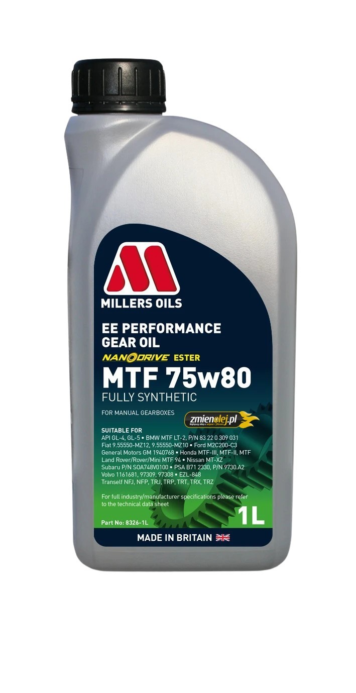 Просматривая «Millers EE Performance MTF 75W80 1л 8326», вы можете быть уверены, что данный товар из каталога «Трансмиссионные масла» будет доставлен из Польши и проверен на целостность. В цене товара, указанной на сайте, учтена доставка из Польши. Внимание!!! Товары для Евросоюза, согласно законодательству стран Евросоюза, могут отличаться упаковкой или наполнением.