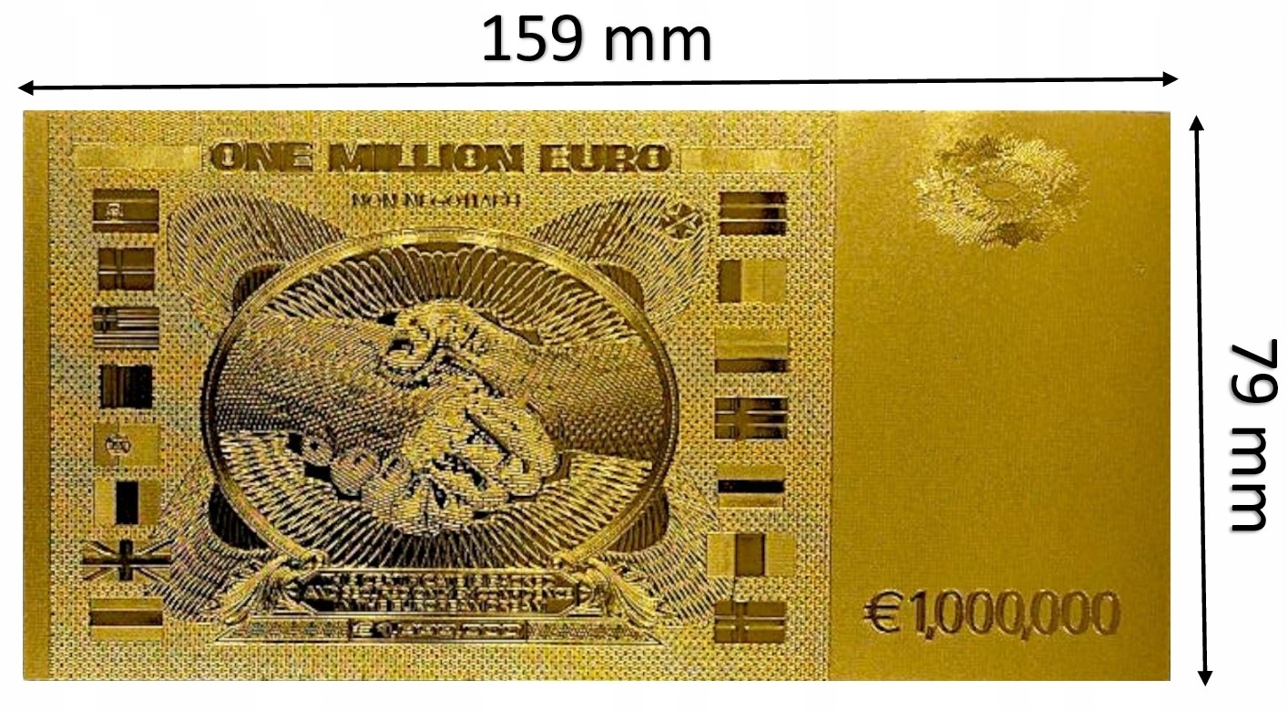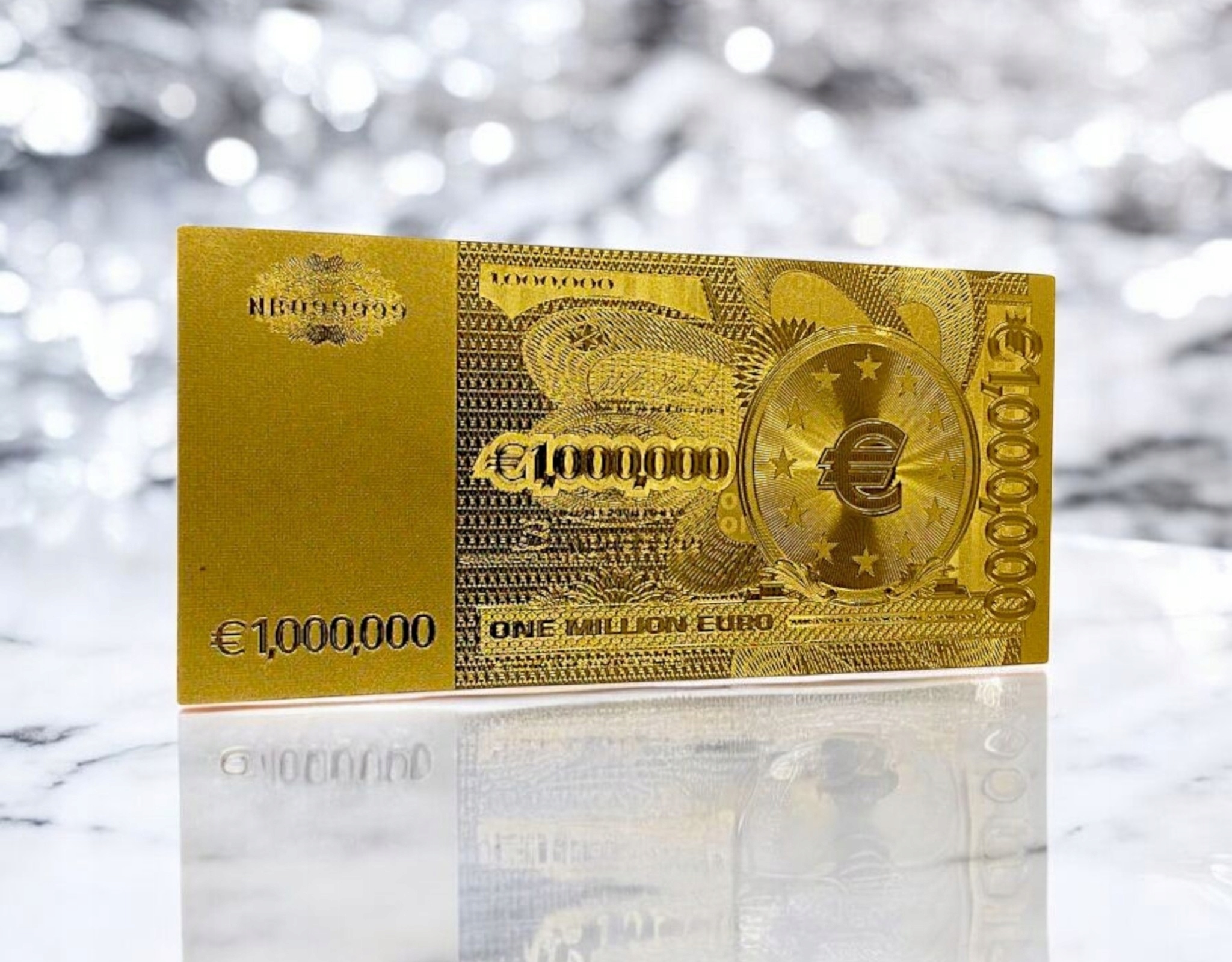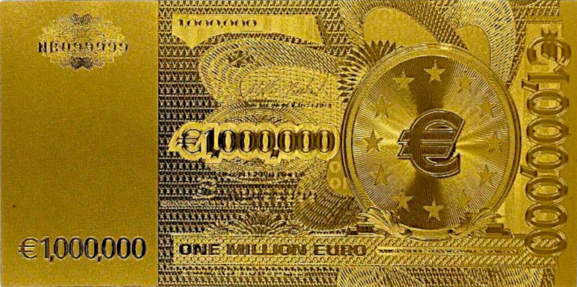 Уникальная коллекционная банкнота из ПВХ необычного номинала в 1 МИЛЛИОН ЕВРО, изготовленная из прочного пластика и покрытая привлекательной золотой фольгой. Эта банкнота представляет собой уникальный гаджет, который непременно оставит равнодушным каждого любителя нумизматики и людей, ценящих уникальные предметы.
